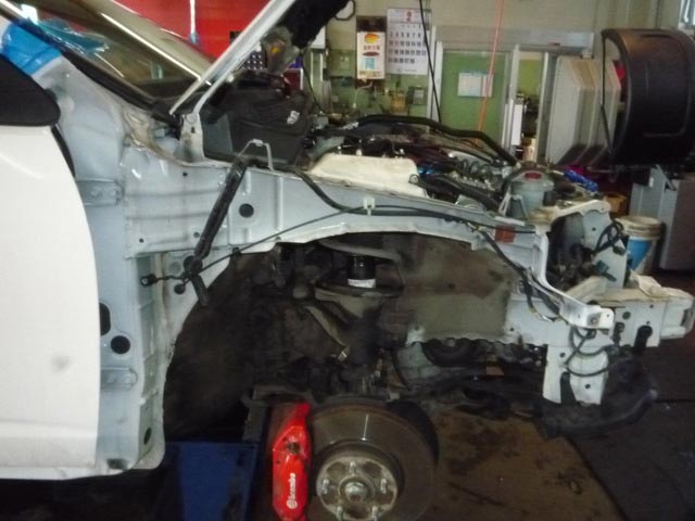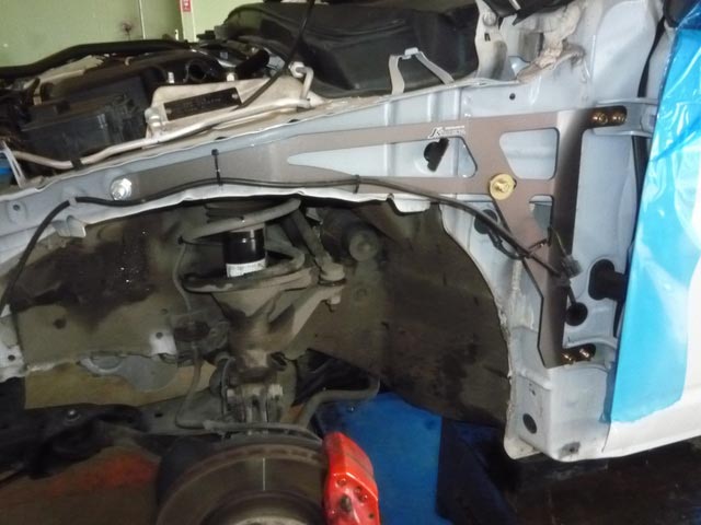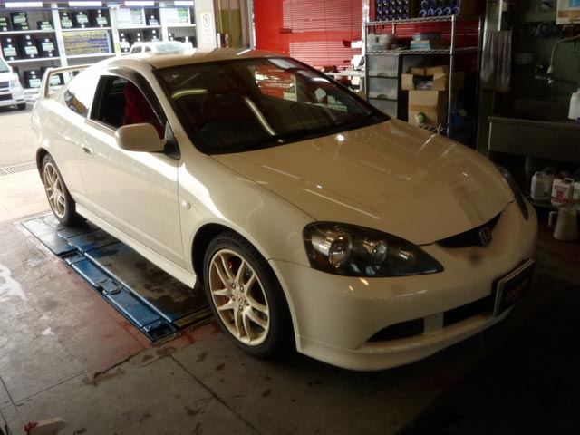 当店で、今現在〔気合の入っているお客様ランキング〕で上位にランクされるかな?インテグラDC5。春のツーリングに向けてのボディ補強です。