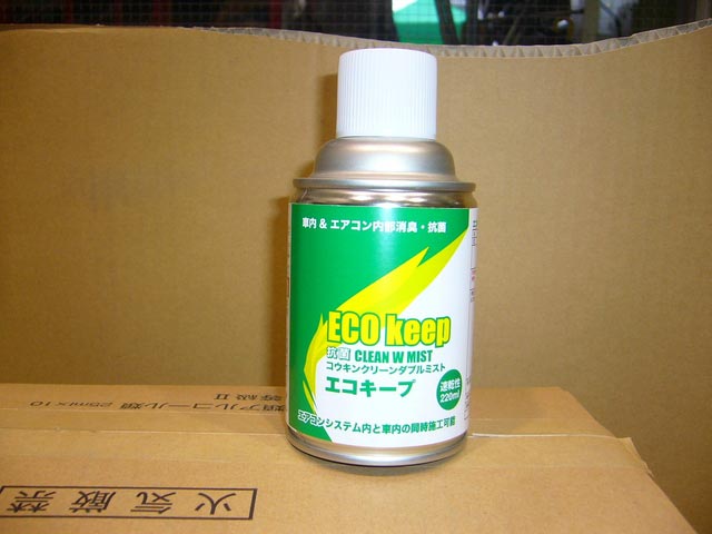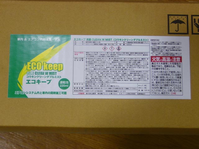 〔ECO KEEP コウキンクリーンプロ〕と言う名称で、エアコンシステム内エパボレーターの抗菌・消臭・防カビは勿論、車内も同じ効果で同時に行ないます。作業はそれぞれではなく、同時に行ないますので、作業時間も短くて、お車をお預かりする必要も有りません。