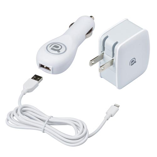 セット内容は、シガーソケット・1.5mUSBケーブル・ACアダプターの3点セット。これで、家庭用・車用の両方まかなえます。色は、ホワイトとブラックの2種類。