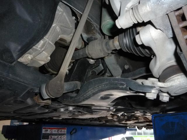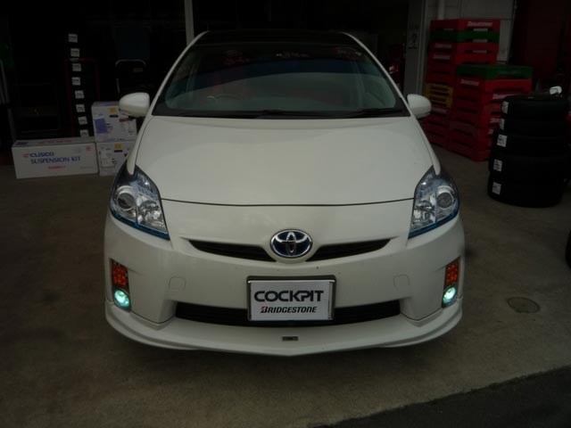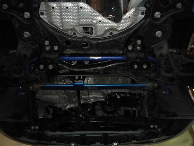 ZVW30のプリウスです。すでにフロントは補強バーが付いていますが、更なる剛性アップという事で、フロントスタビライザーとリアのスタビバーの追加作業です。
