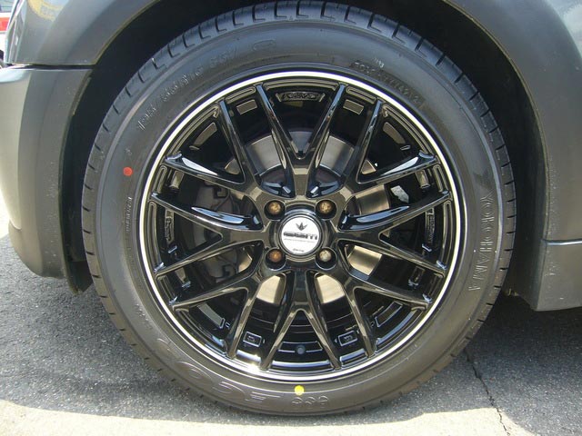肝心の商品ですが、RAYSの〔セブリング・クロスフェイド〕で、サイズが16X65 4 100 45、カラーがグロッシーブラック/リムエンドDCです。ディスク面に艶が有って、なかなかキレイですよ。出具合もちょうどイイでしょ!