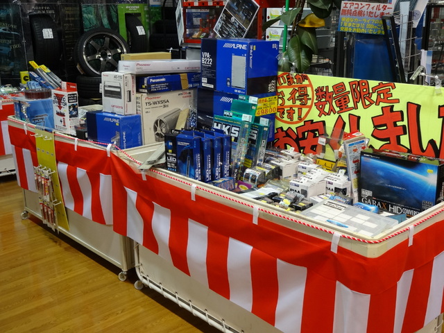 オイルや添加剤関連商品、バルブ、オーディオ・ナビ関連など、掘出し物が有るやもしれません。早い者勝ちです。