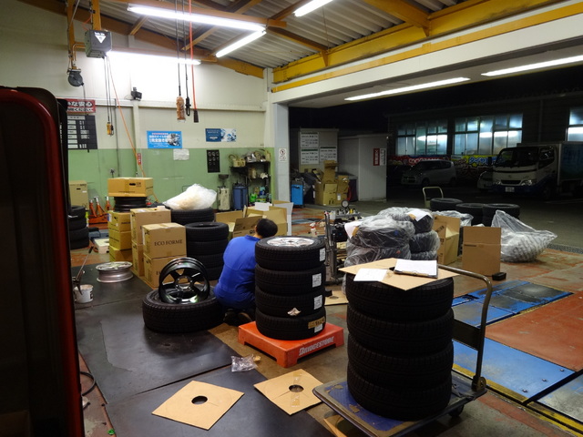 で、1日あおられて落着いたと思ったら、このタイヤとホイールの山です。スタッフも、大変なところ頑張っています。今日がとどめかな?