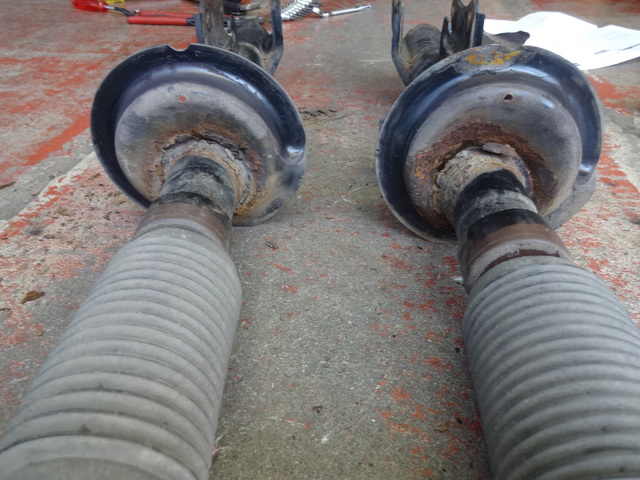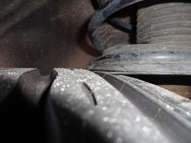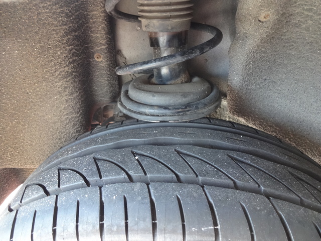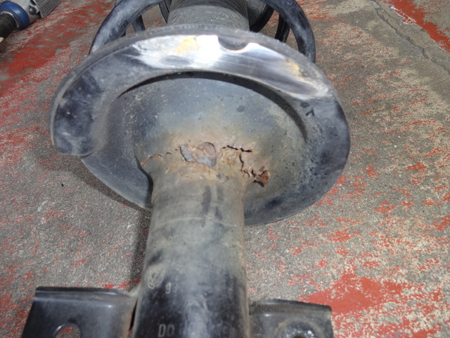 点検の結果、リヤ左のショックアブソーバーのロアシートが錆で脱落タイヤに干渉、