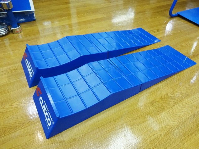 載せるだけで9cmのクリアランスを確保、分割にもなるのでジャッキを滑り込ませるスペースも取れます。分割式で収納もコンパクト。