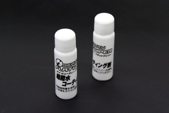 さらに、ワイパーで掃ける所意外も撥水コート出来る様に、ミニボトルも付属。