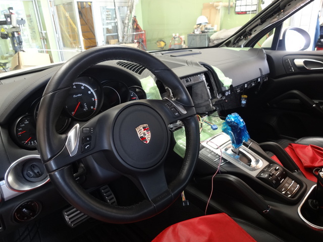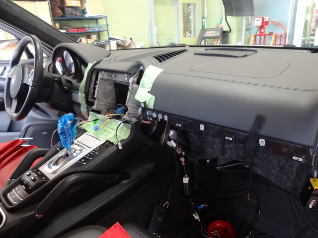 PITの温度計も40℃超え、そんな中先日のカイエンのナビゲーションの取付です。