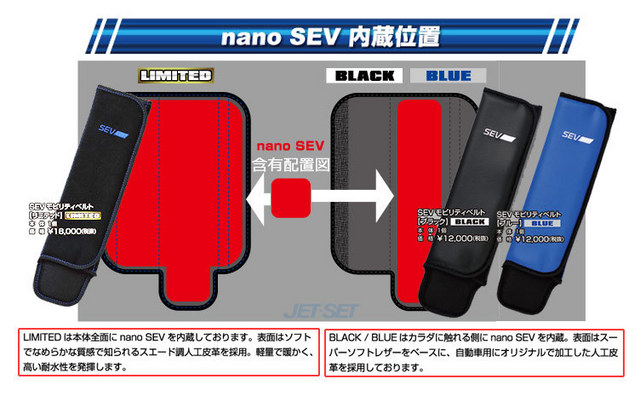 パッと見は、ただのシートベルトカバーですが、内部にnano SEVが内蔵。