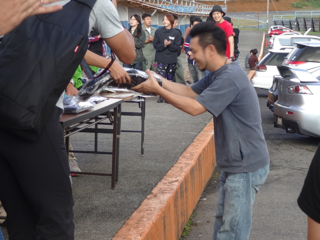 走行後は表彰式で各部門の上位者への商品プレゼント。(当然全員分ありますよ)