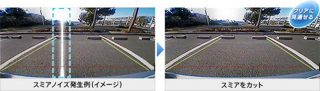 日中はより鮮明に、夜間は自然な色合いで確認できます。更に、スミアノイズと言う光の反射で出来る線の様な反射が出にくくなって、どんな状況下でもクリアな映像で後が見やすくなりました。