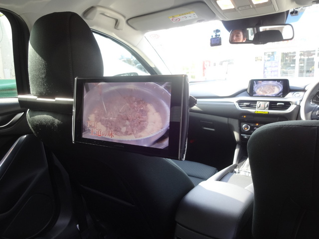 現行アテンザワゴンです。今回は、お出かけの際に、後のお子さんが飽きない様にモニターを増設したいという事でご来店されました。
