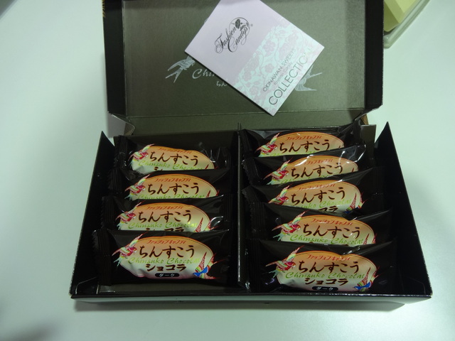 休憩に、A様から沖縄のお土産に頂いた『チョコちんすこう』を食べて・・