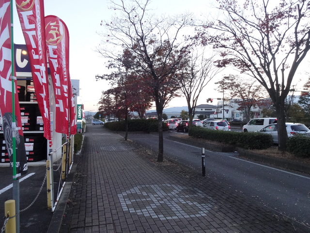 お客様の言葉に街路樹を見たら、あんなに青々としてた葉っぱが真っ赤になって半分くらい落葉してました。