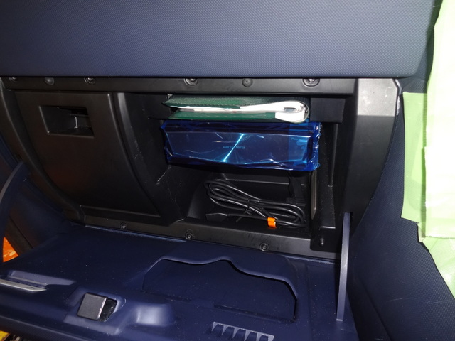 ナビ本体をグローBOXに移動。カメラ取付も完了しましたので、