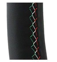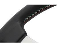 オーソドックスなデザインの3本スポークで、握りのレザー部のステッチがイタリアンカラーに・・・。