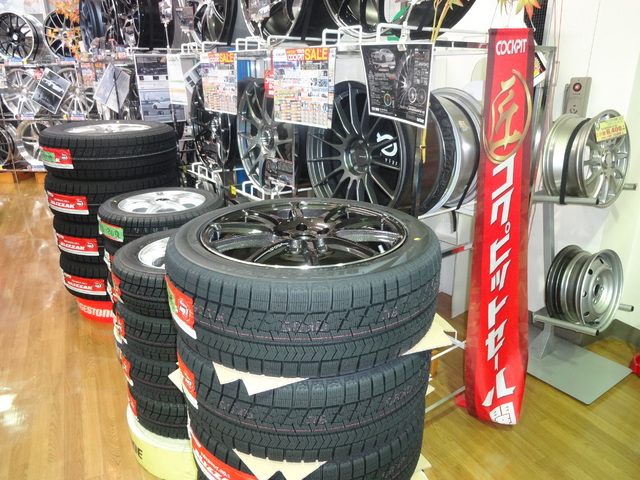 コクピット西部では忙しくなる前に、毎日ご注文頂いたタイヤのセット組をしております。 お陰様で今年も店内が一杯になりそうな勢いで、セット組が展示されております。