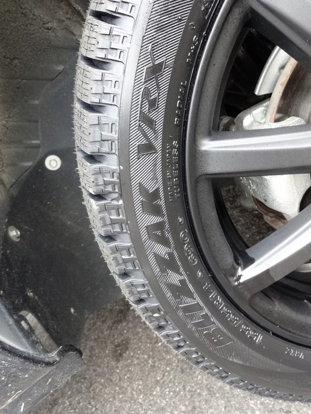 時期的に、冬タイヤを買って頂いての装着作業でした。当然ですが、スタッドレスタイヤは〔ブリザックVRX〕です。