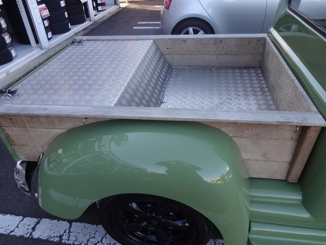 これは、後部座席を無くして手作りの荷台を付けたんです。