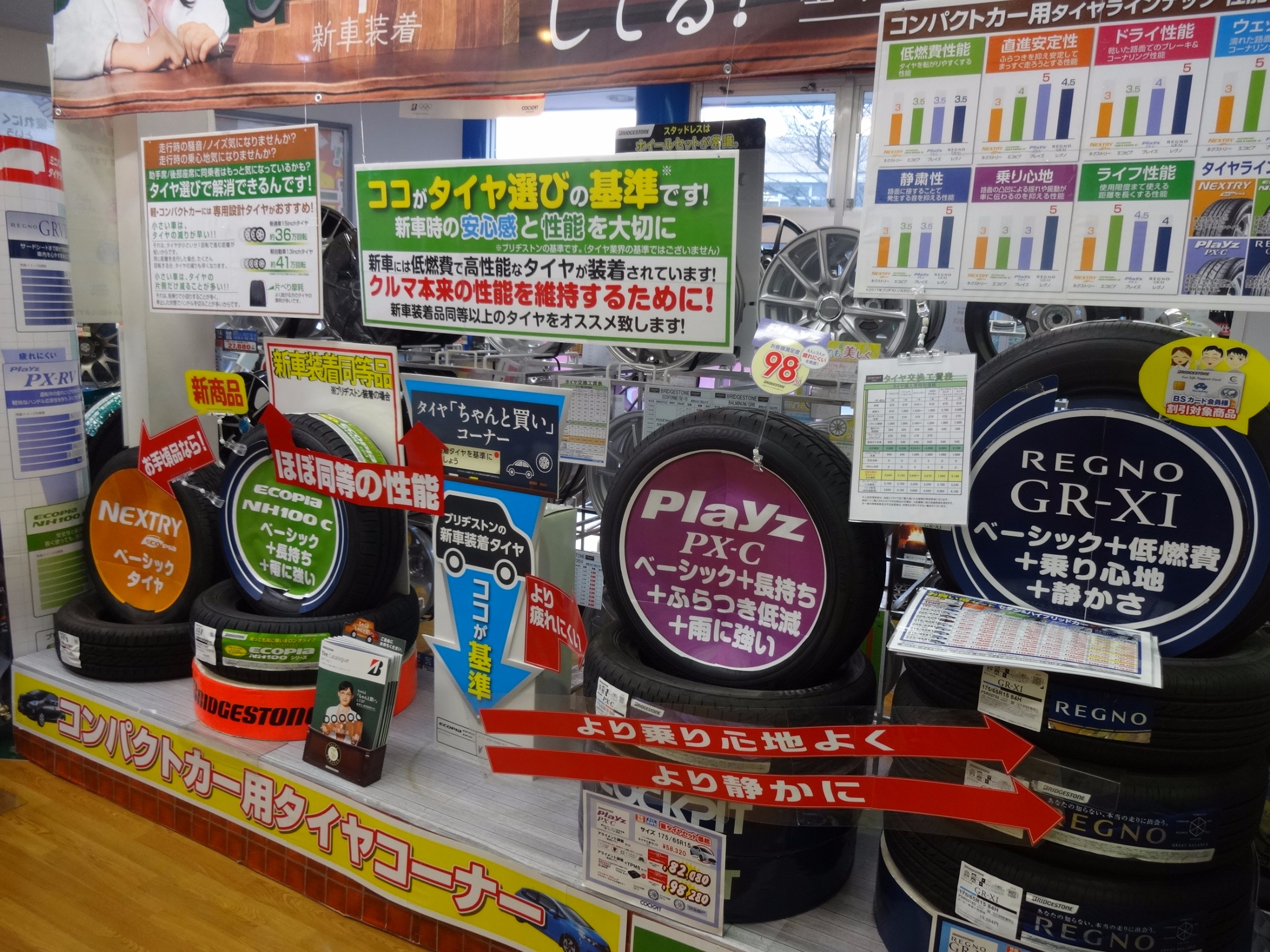新車装着タイヤは性能が良いんです。 タイヤを買い替えた時、新車装着タイヤより性能が劣るタイヤを履くと