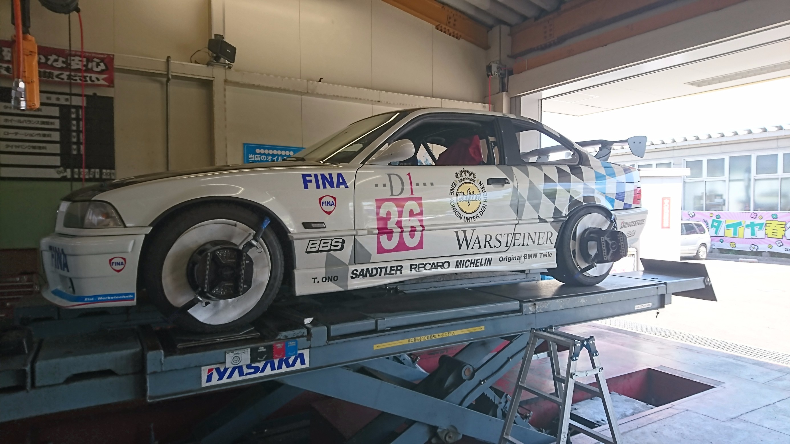レース仕様のBMWがアライメント調整のためにご来店されました!