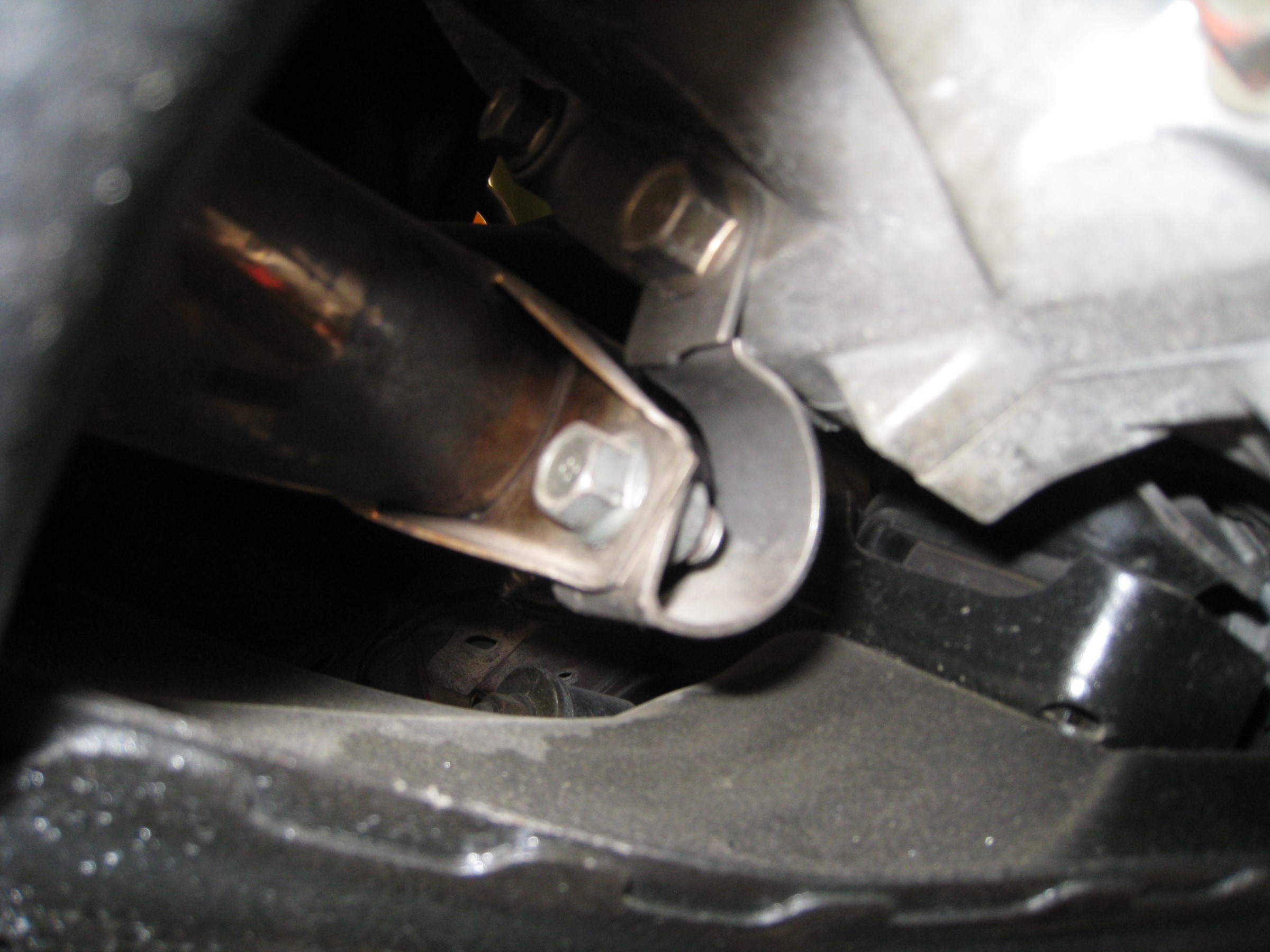 リフトアップしたところ、ミッションの取り付けボルトと