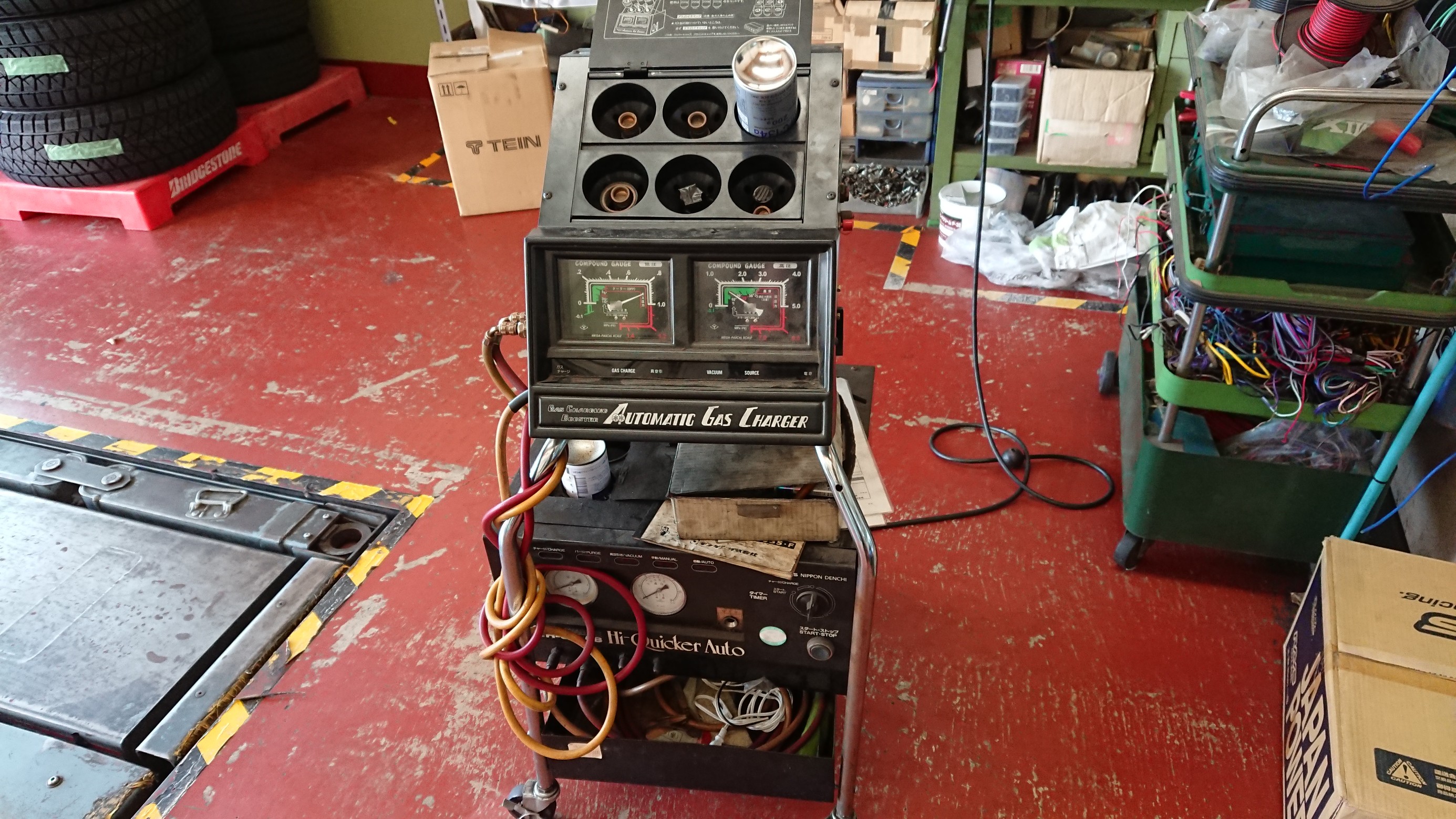 当店ではこのような機械を使用して、ガスの量が問題ないか等を点検しています。