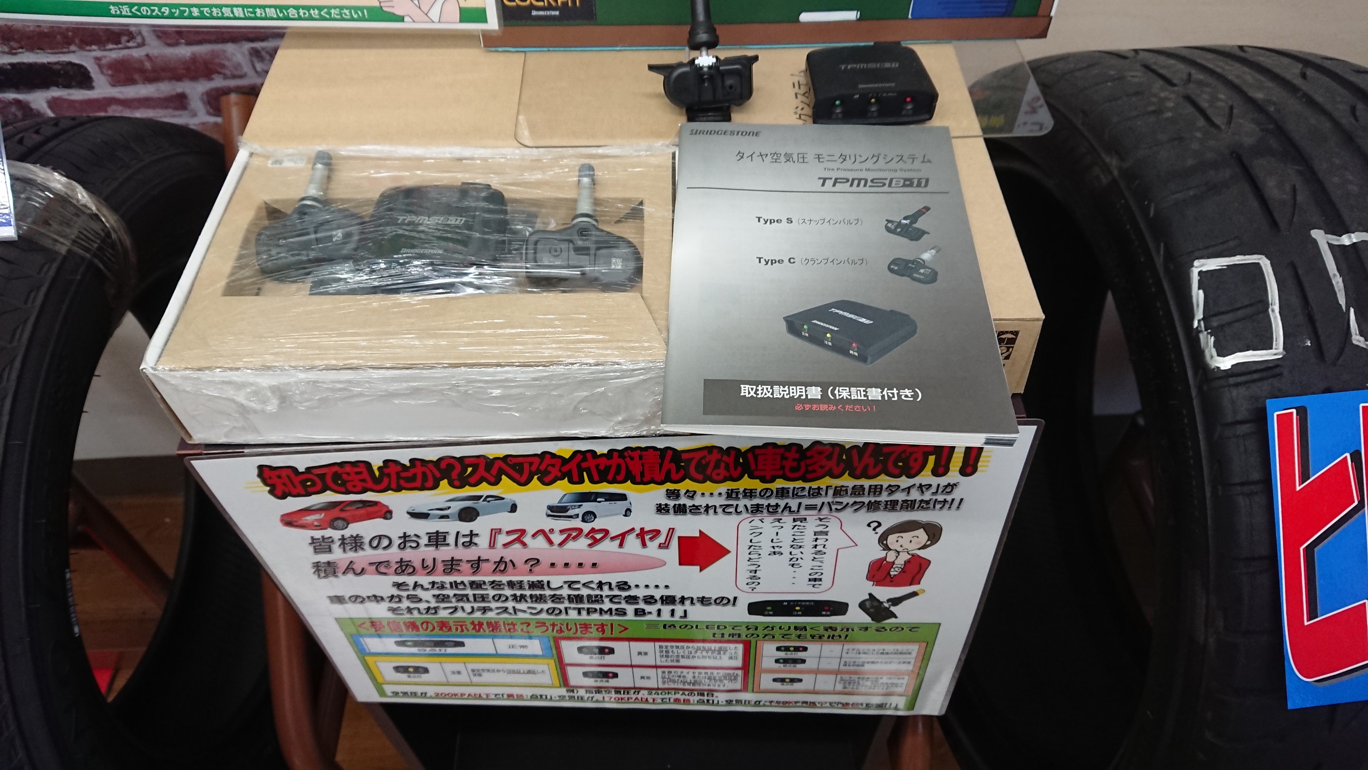 普段あまり空気圧の確認を行わない方でも、車内から空気圧が不足していないかの確認を行える商品になります(*^^*)