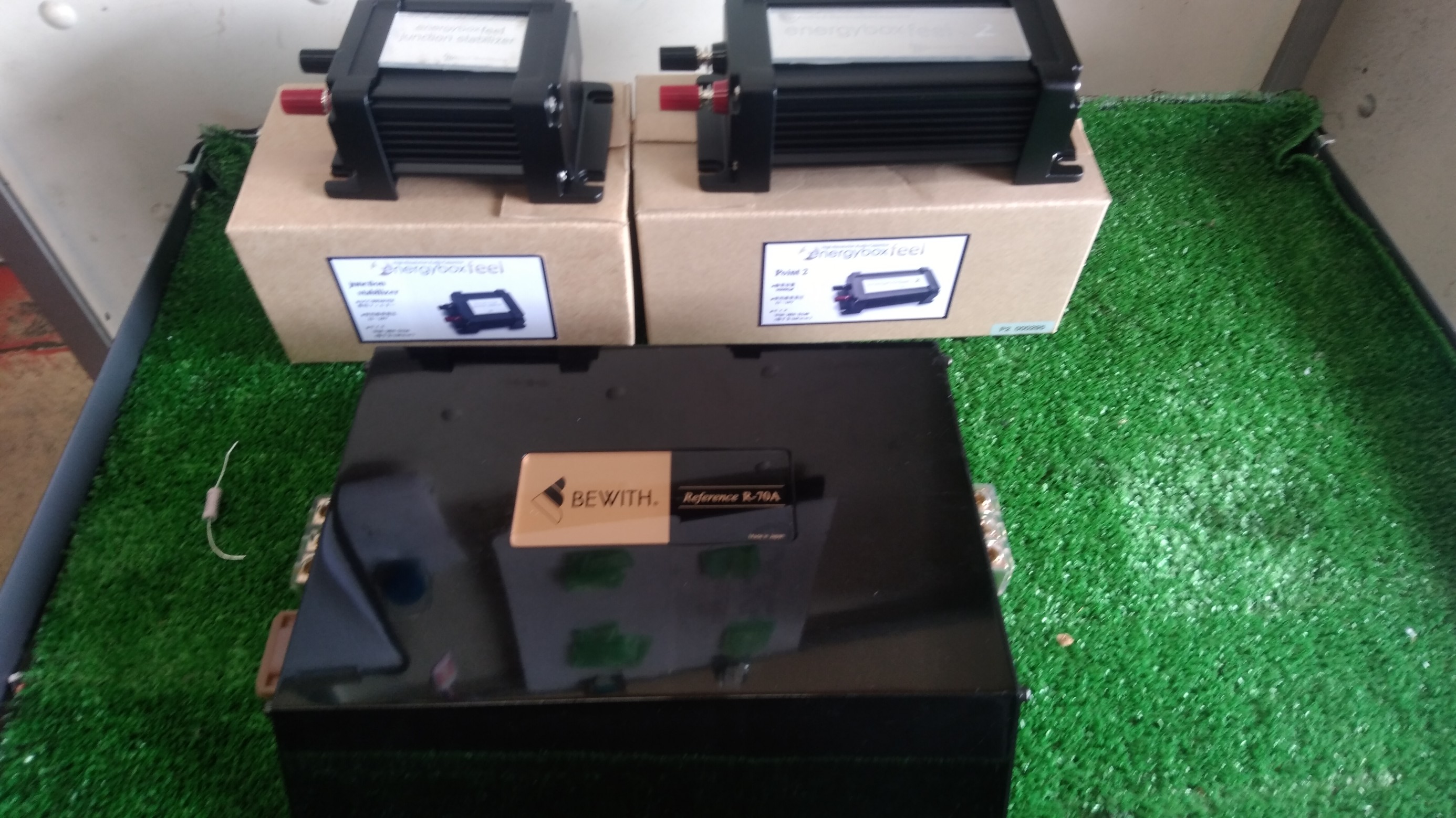 今回取り付けるのはBEWITHの安定化電源と、エナジーボックスfeelポイント2とジャンクションスタビライザーです。