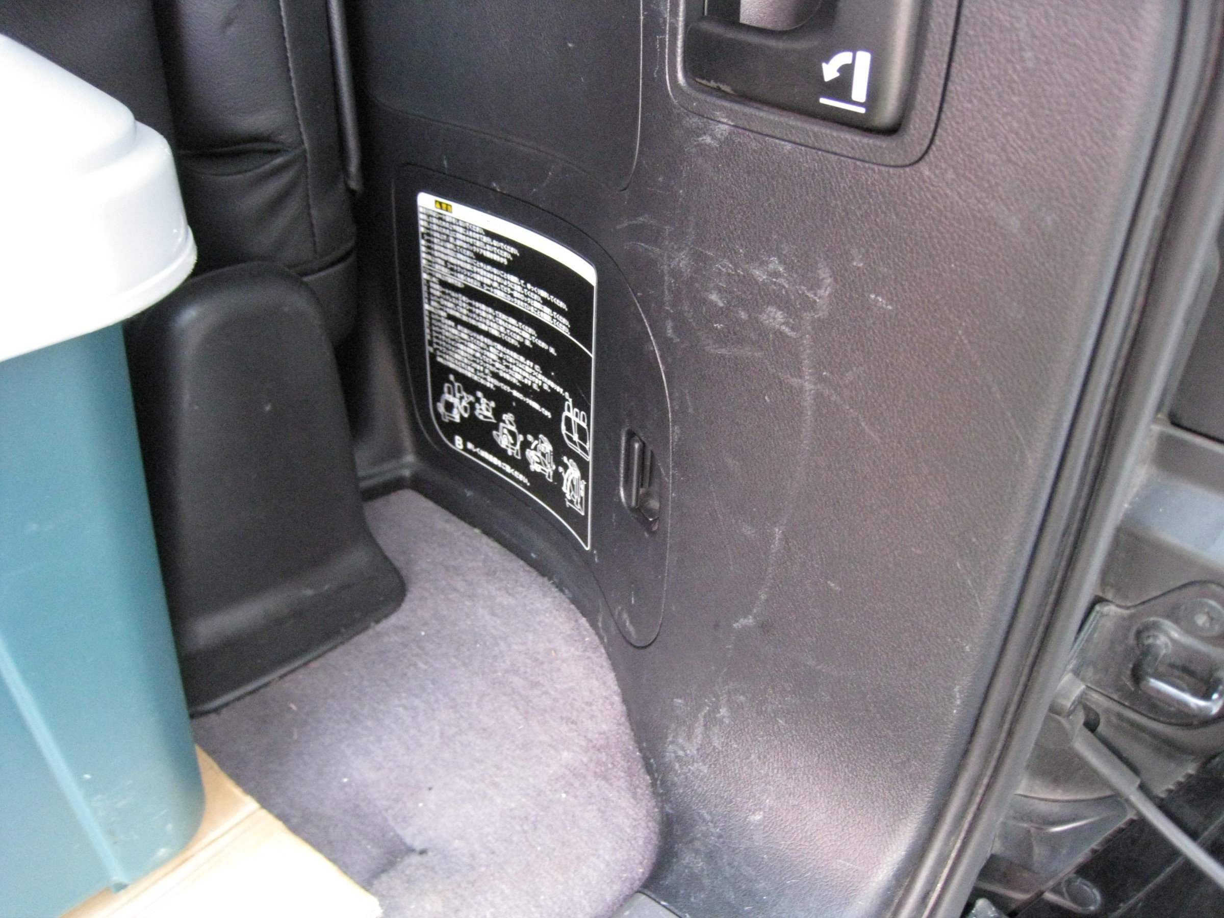 スイッチは荷室のトリムカバー内側に取り付けました。(スイッチの破損を防ぐため)