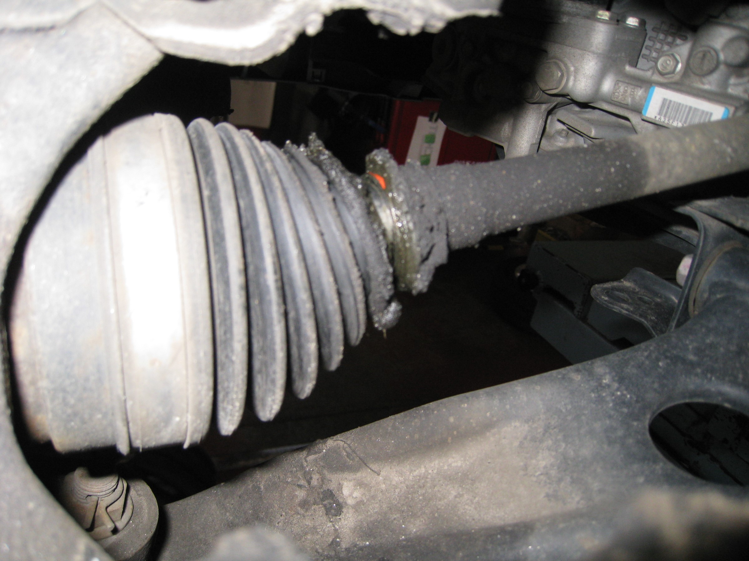 Fドライブシャフトブーツのアウター左が切れていました。