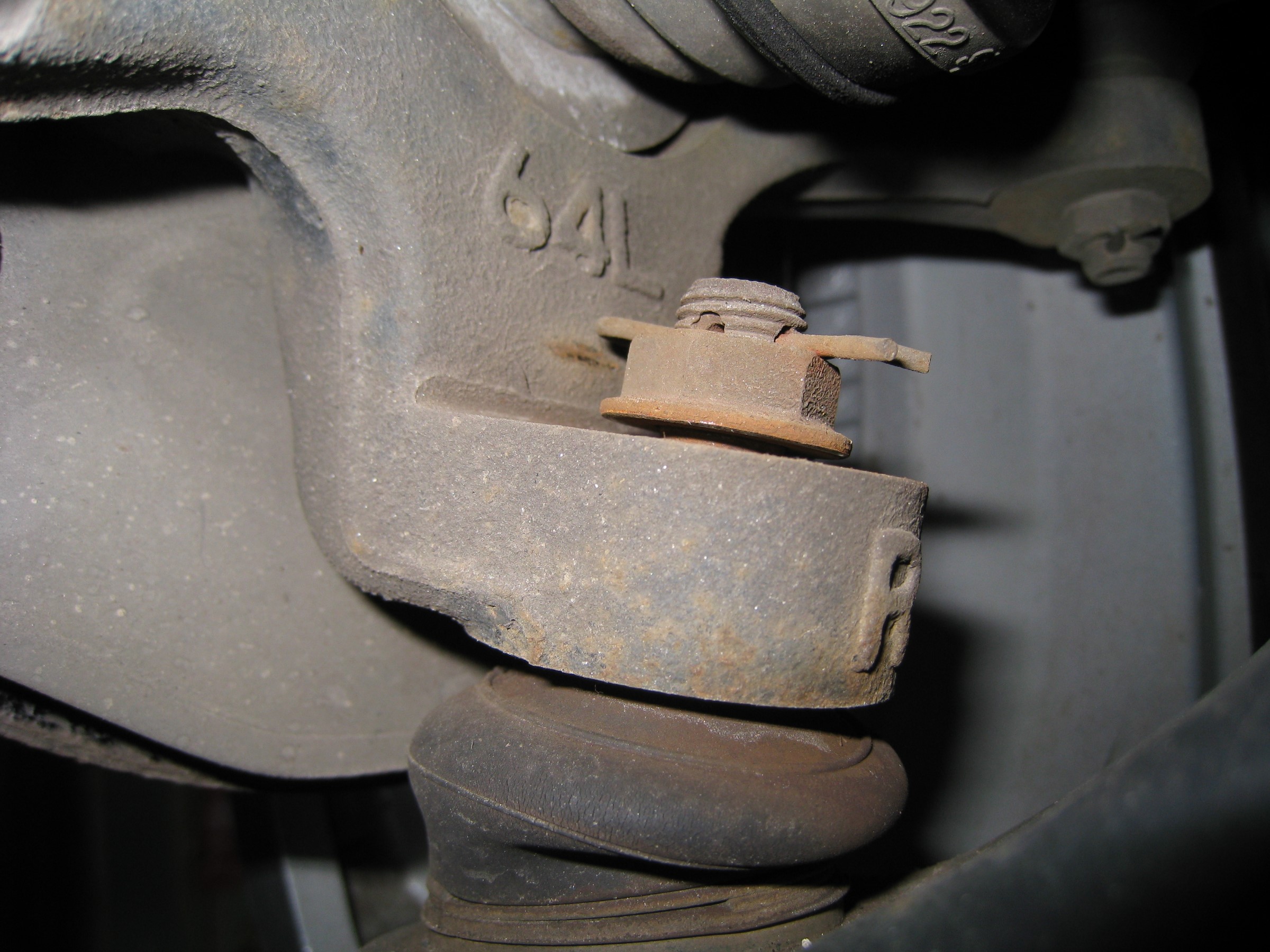 各部点検をしたところ、F右ロアボールジョイントのロックナットが緩んで