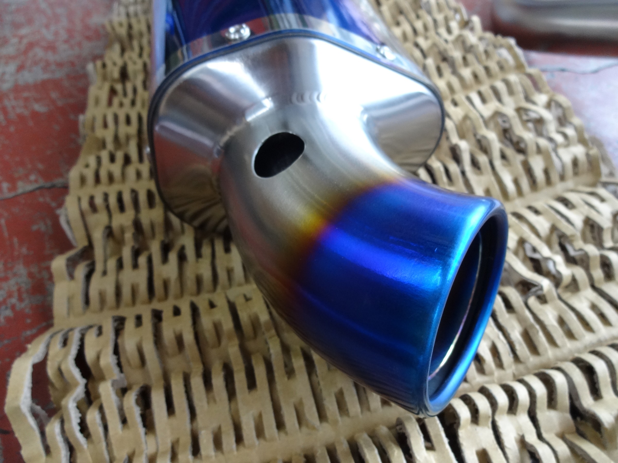 マフラーエンド部分の外筒も職人がハンドバーナーで丹念に手焼きしました。