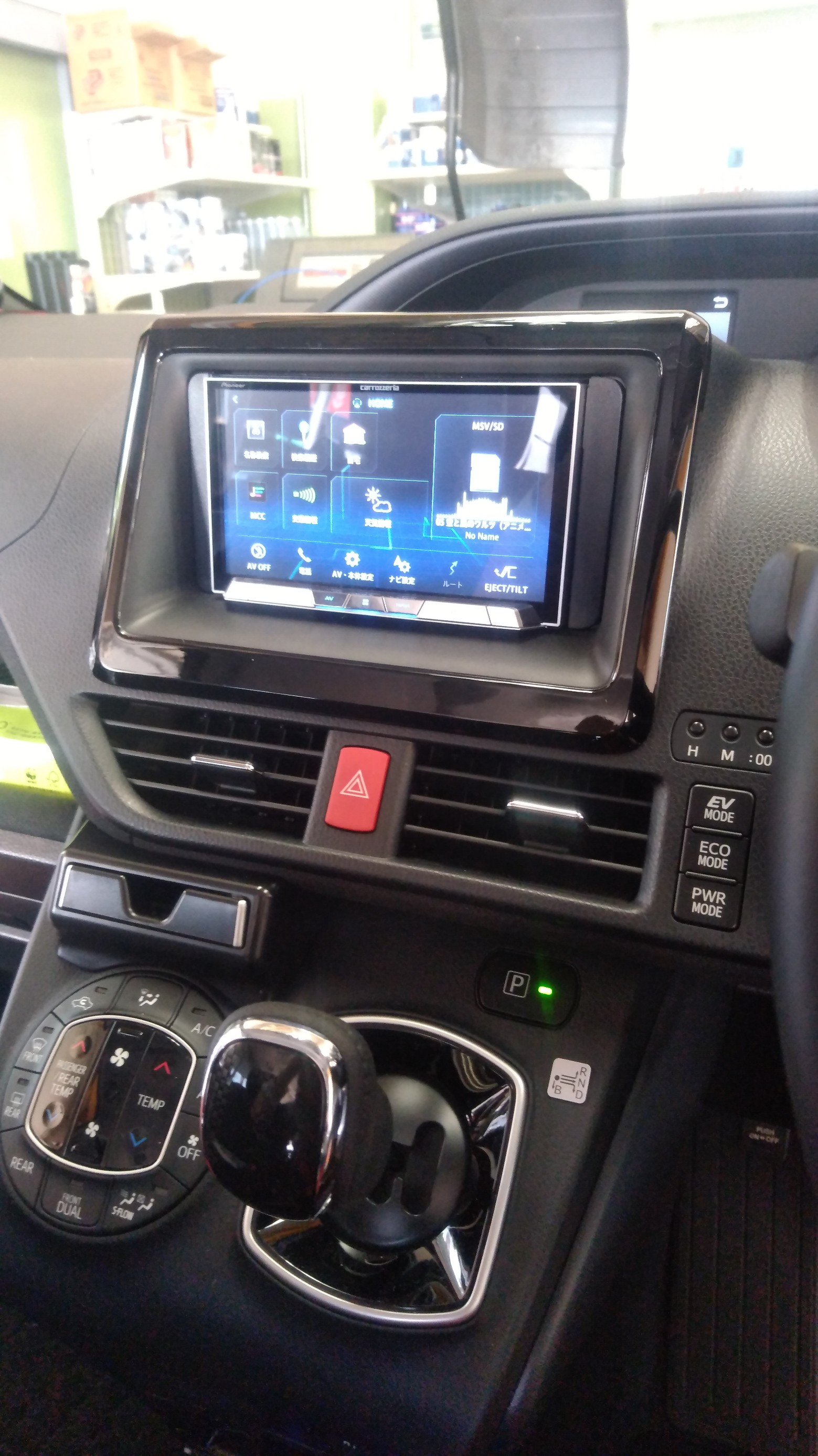 今日はノアにナビをとりつけます。サイバーナビです。音が良くてお客様もお気に入りです。