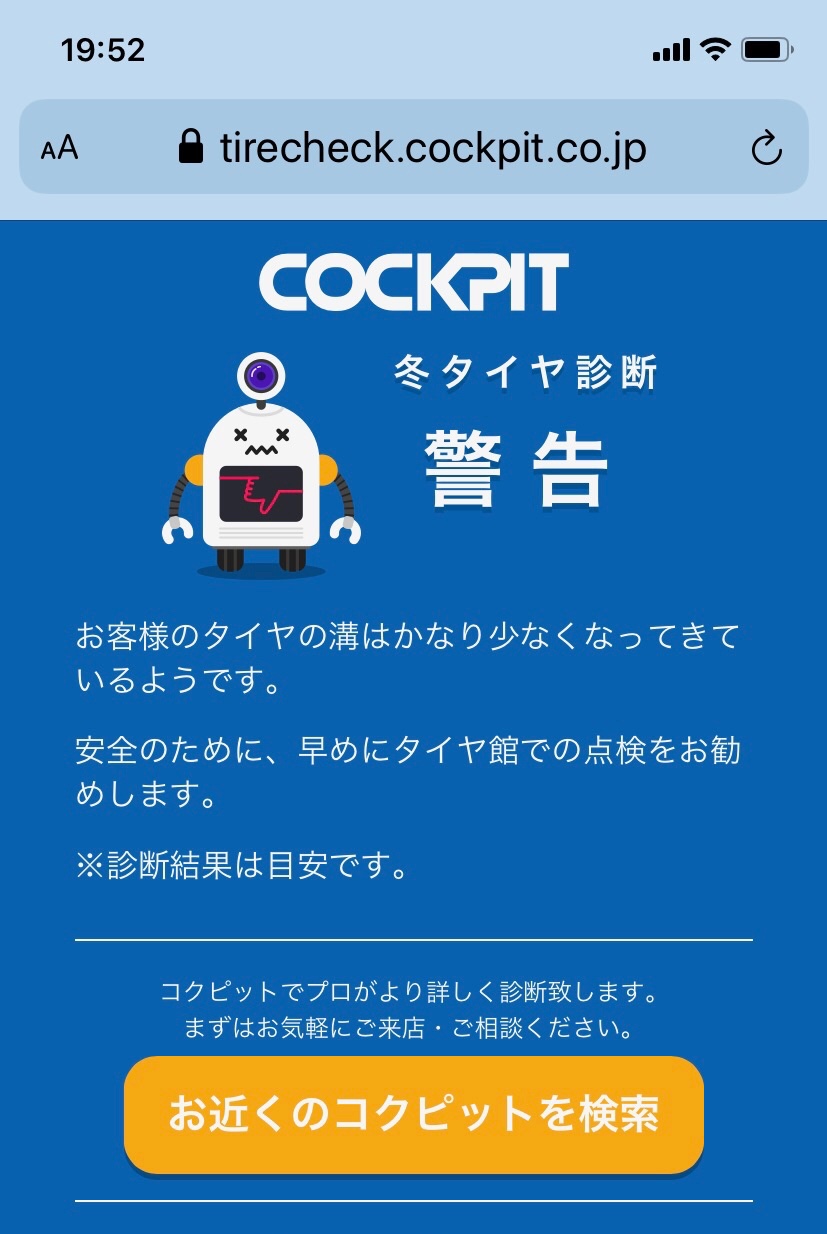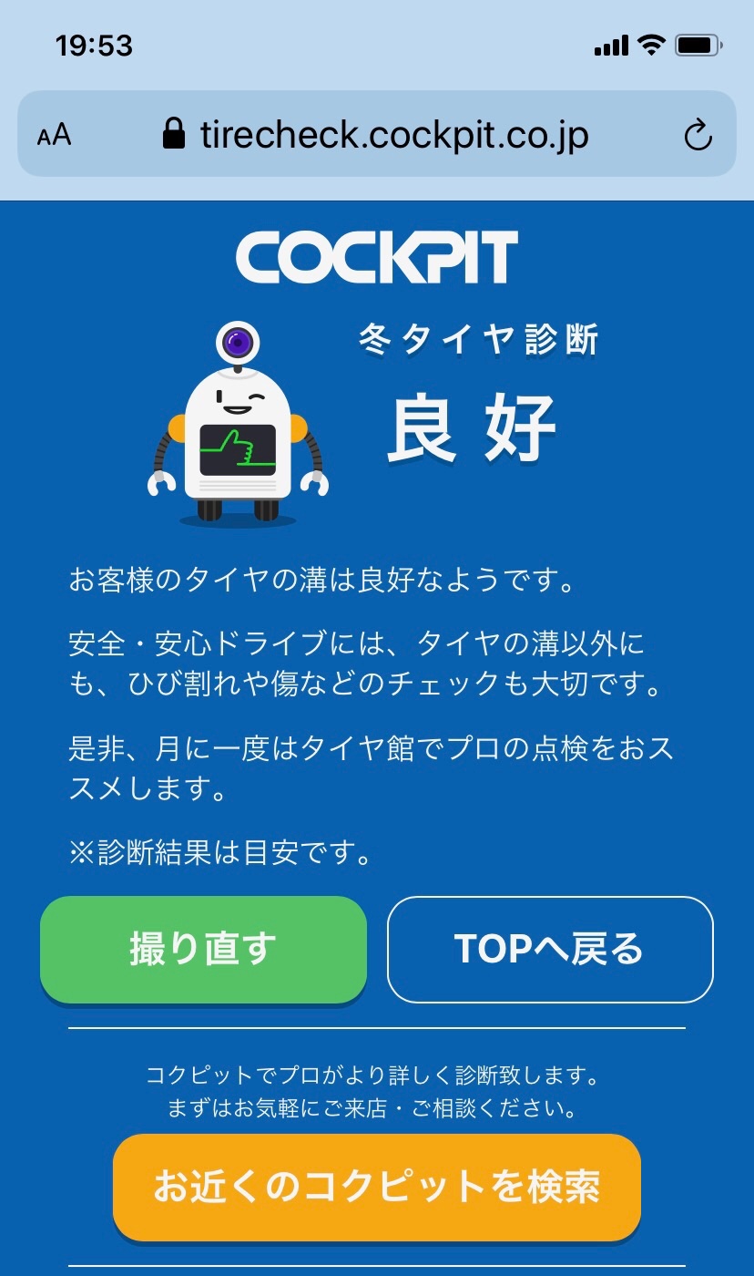 スマホのカメラがタイヤの状態を判断してくれます。