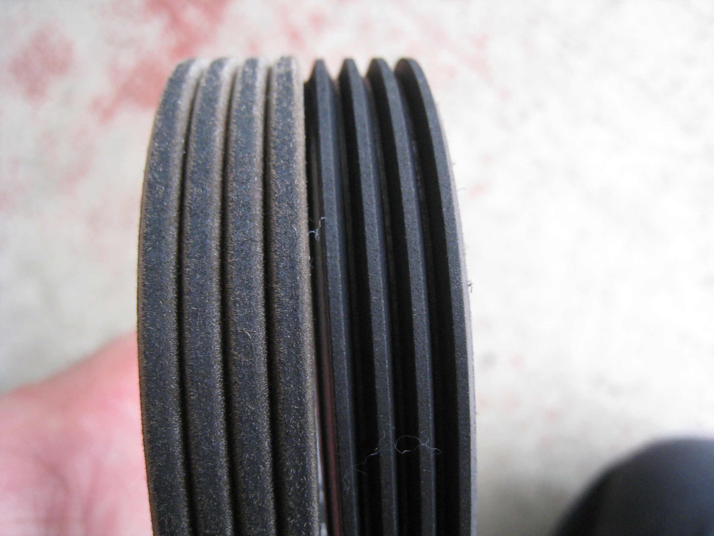 取り外したベルトは、プーリーで削れて溝が深く大きくなっています。