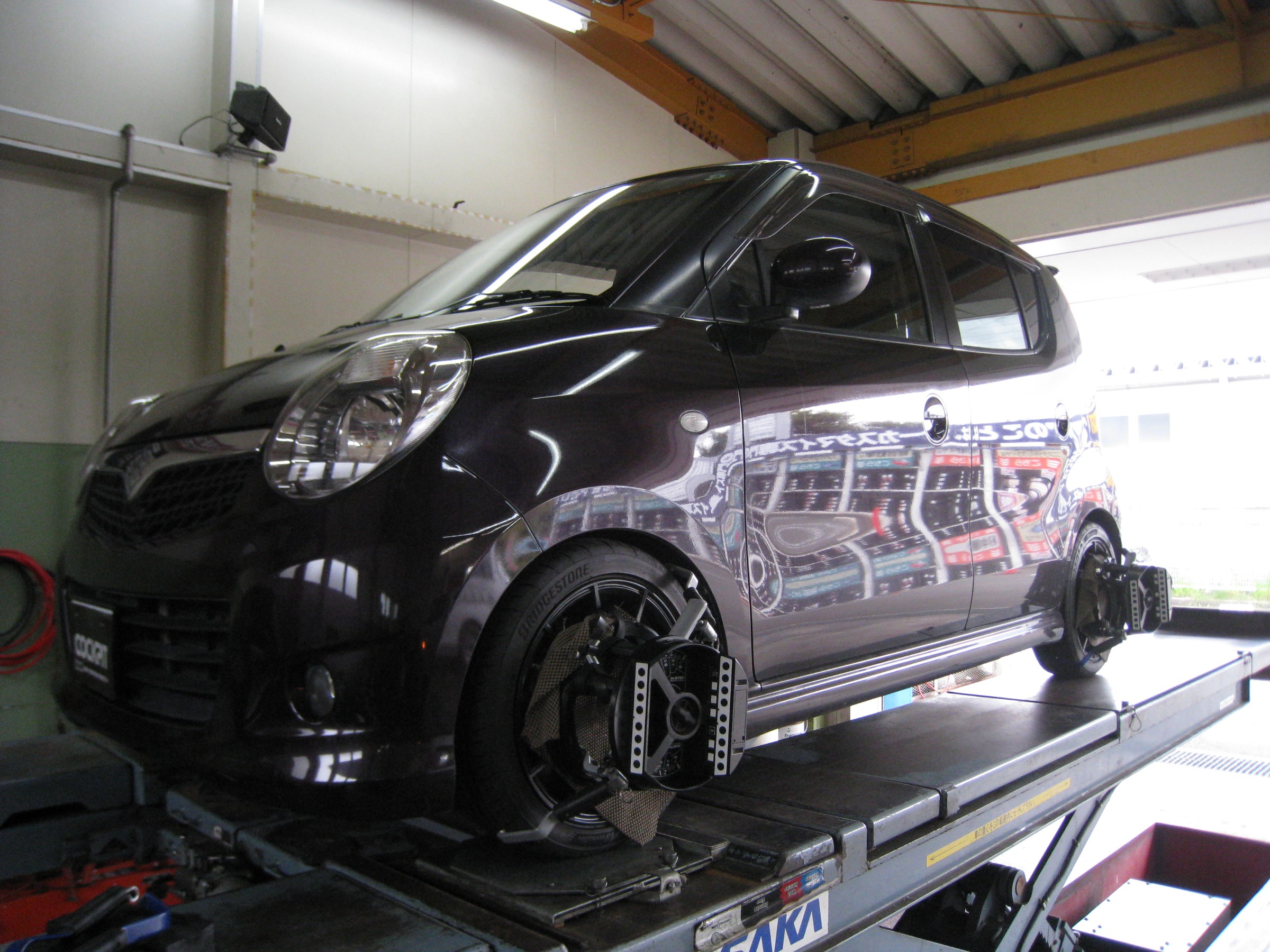 車高調取り付け後のアライメント調整になります。