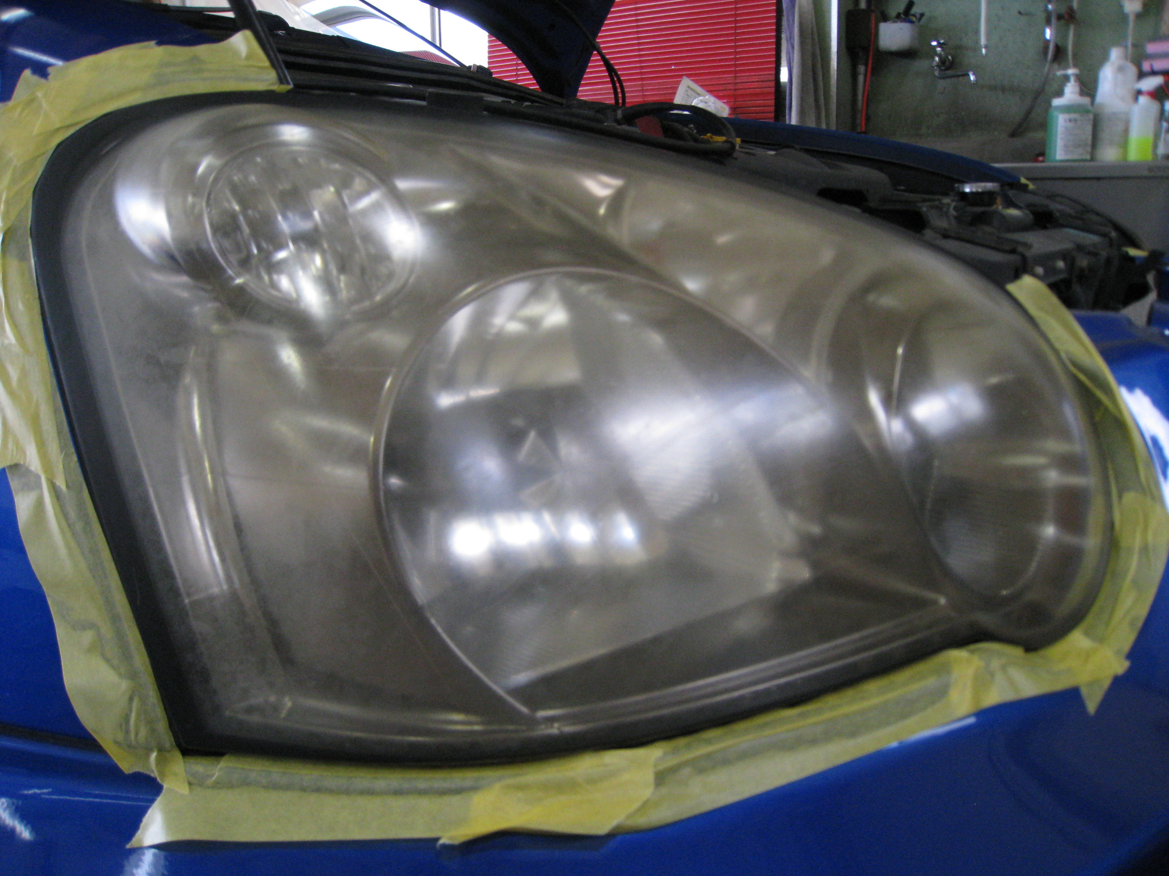 ヘッドライト磨き前です。