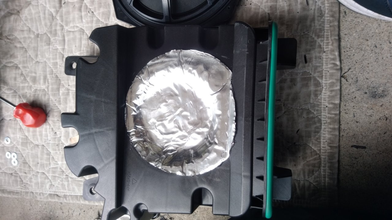 樹脂でできていたのでついでにデッドニング。パワーも変わりますからね!