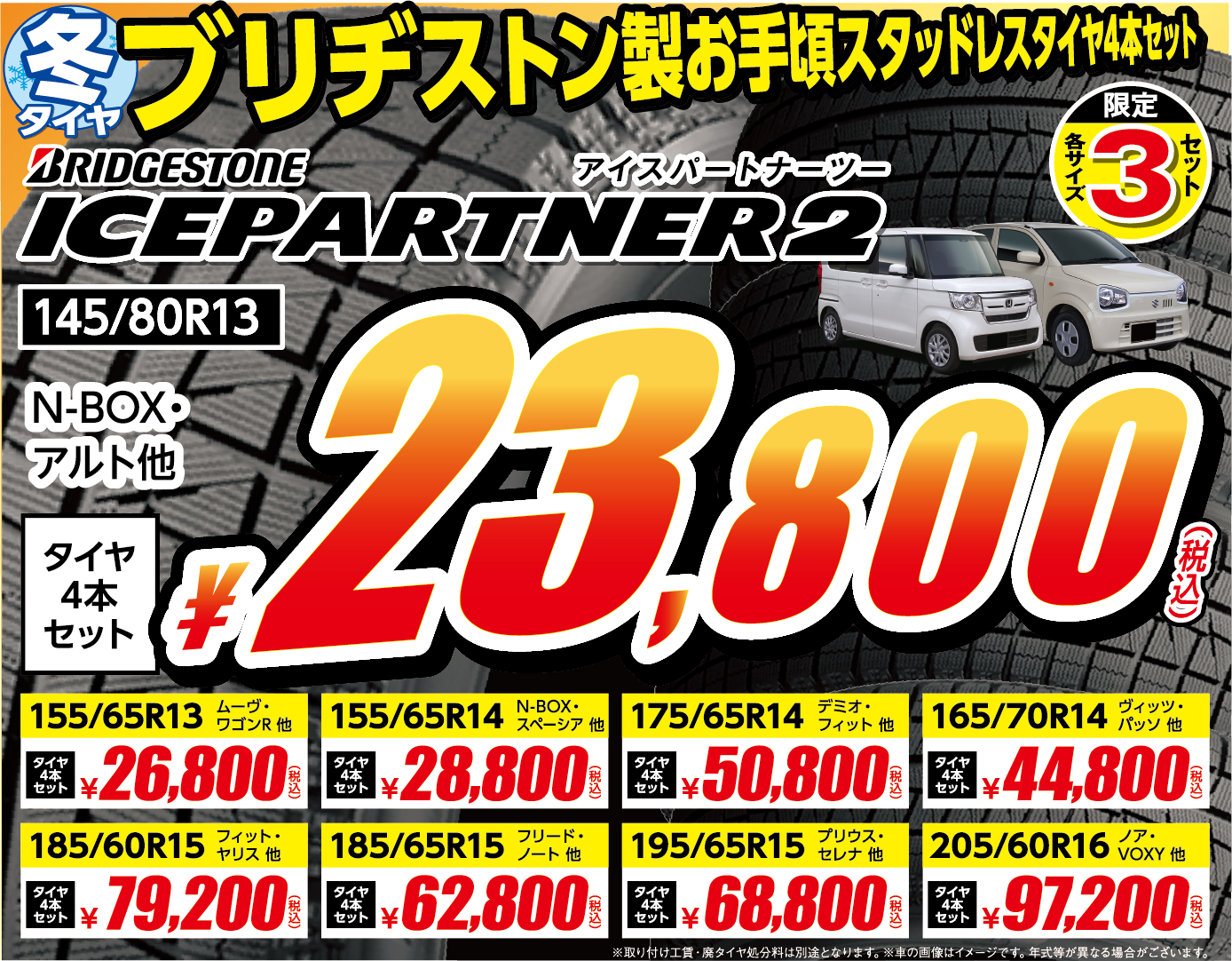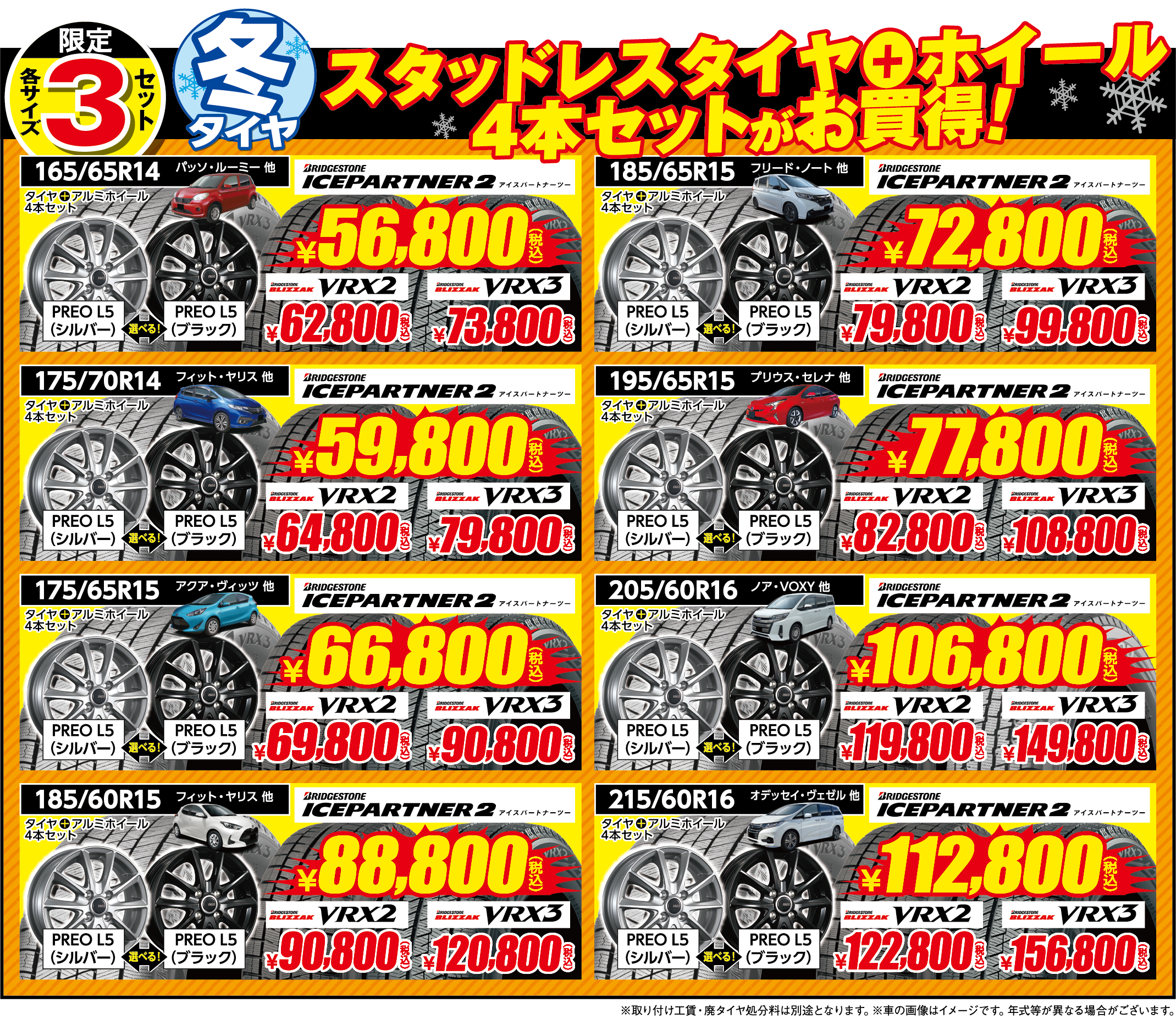 ブリヂストンのお買い得数量限定スタッドレスタイヤを