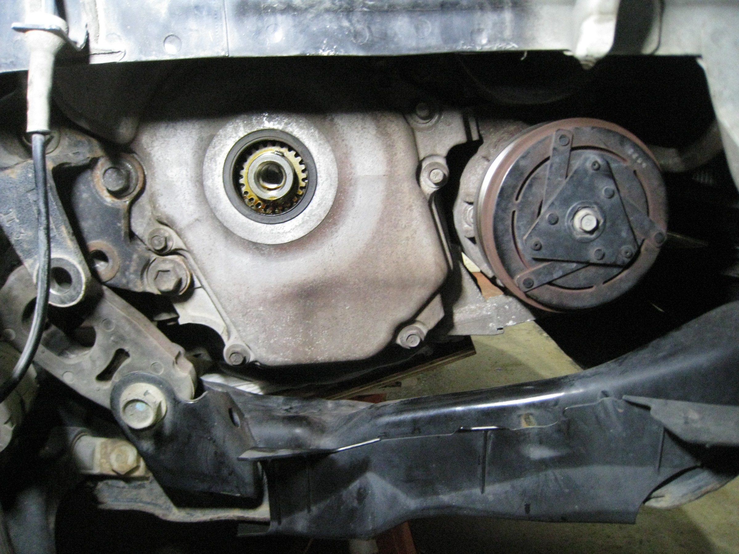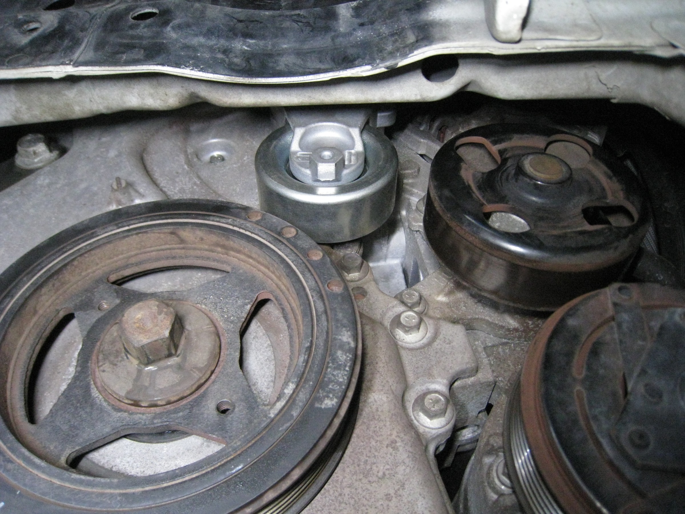 テンショナーが外しにくかったので、クランクプーリーを外しました。