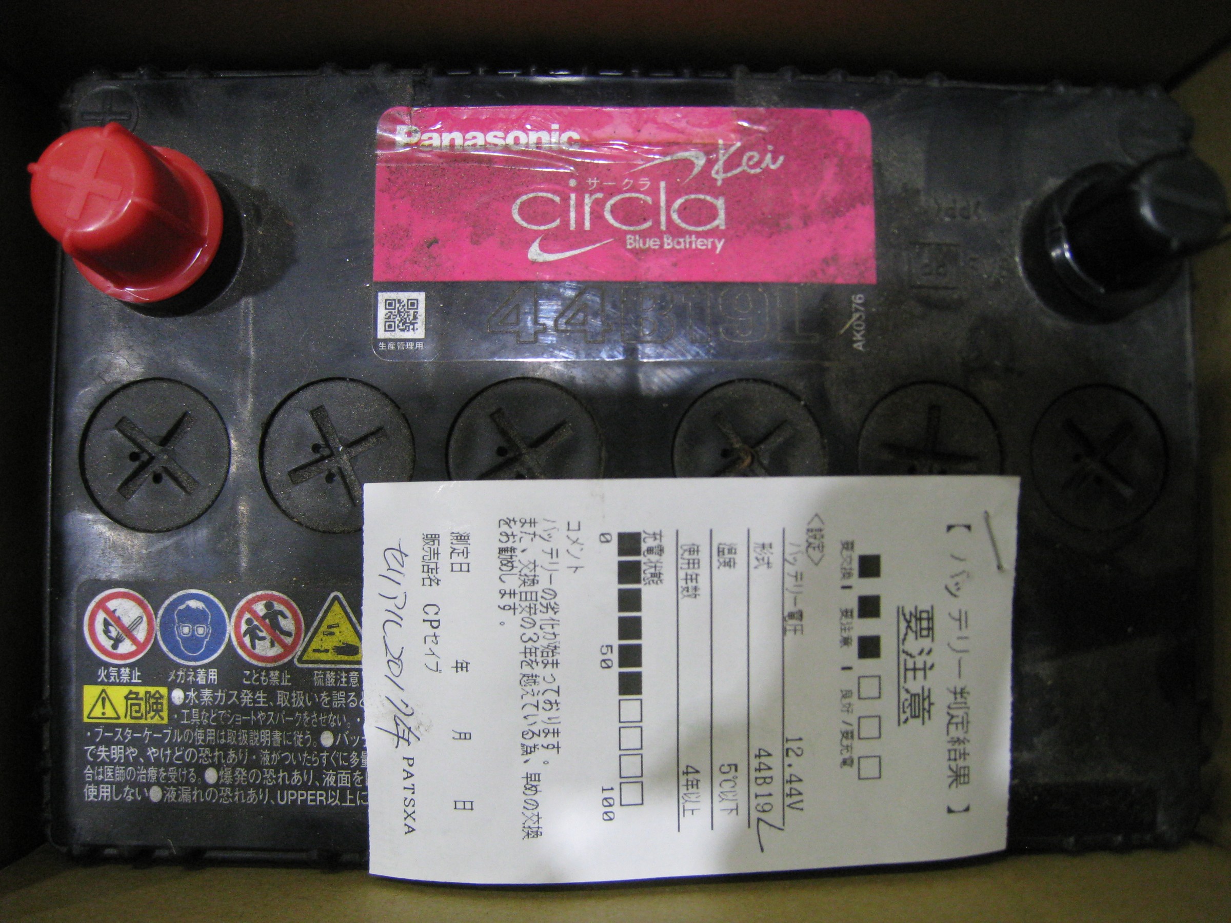 バッテリーテスターでの点検結果は要注意で、製造年は2017年でした。