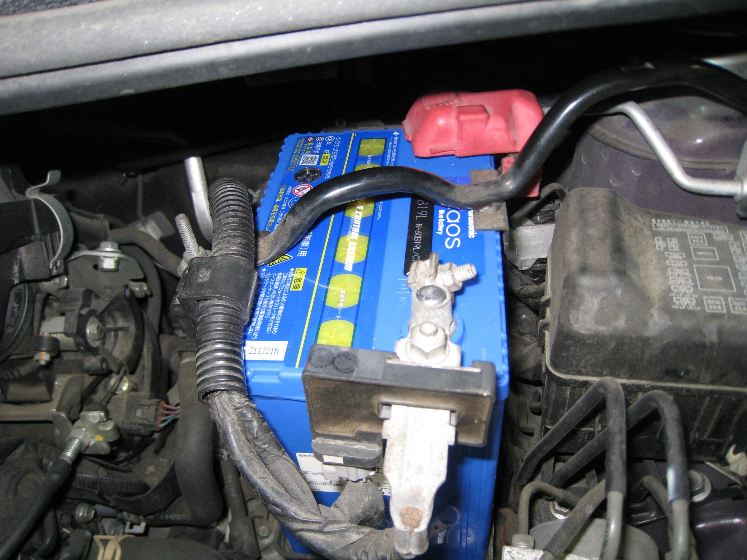 セルモーターの回りが遅かったため、バッテリーを点検しました。