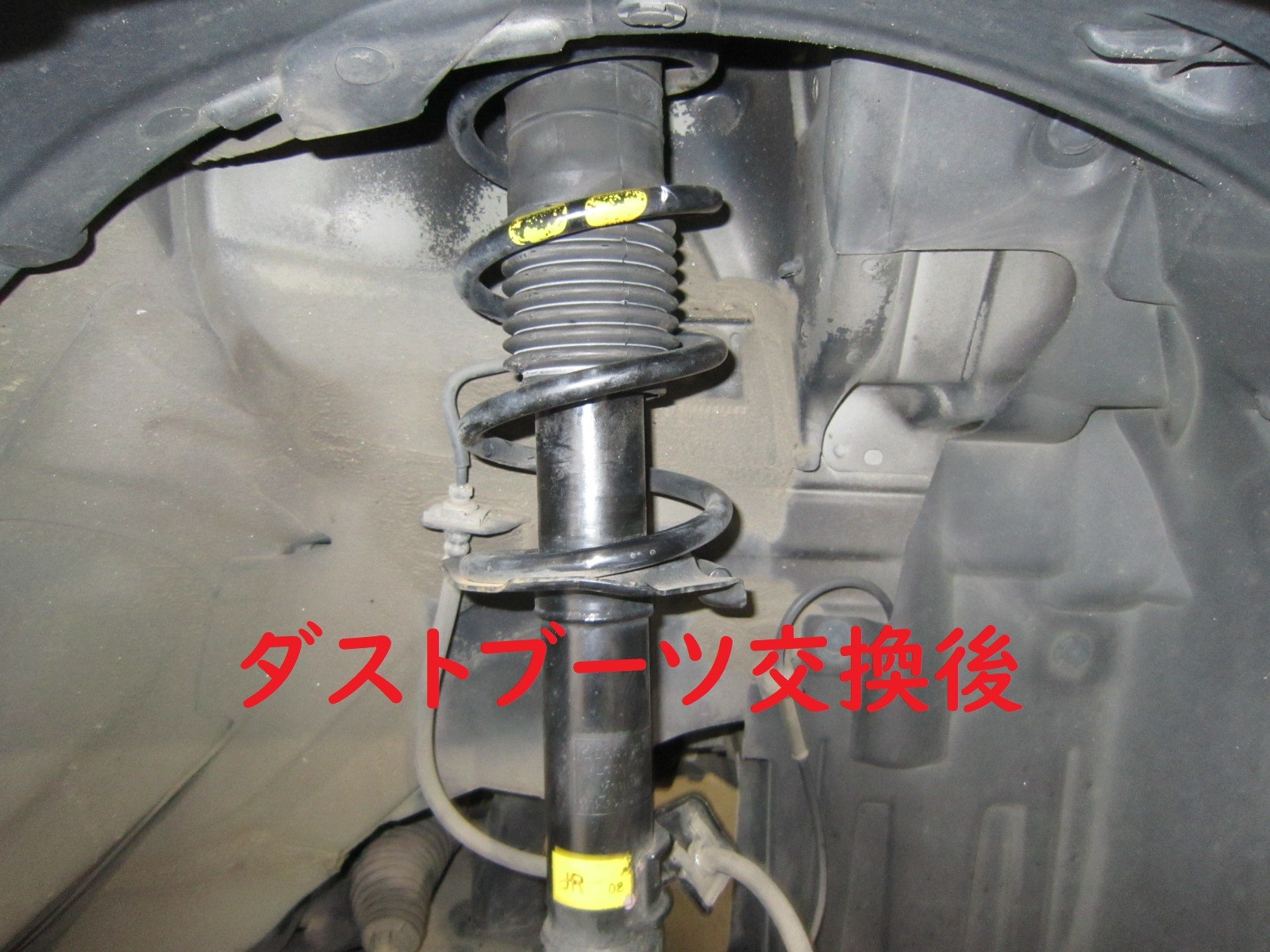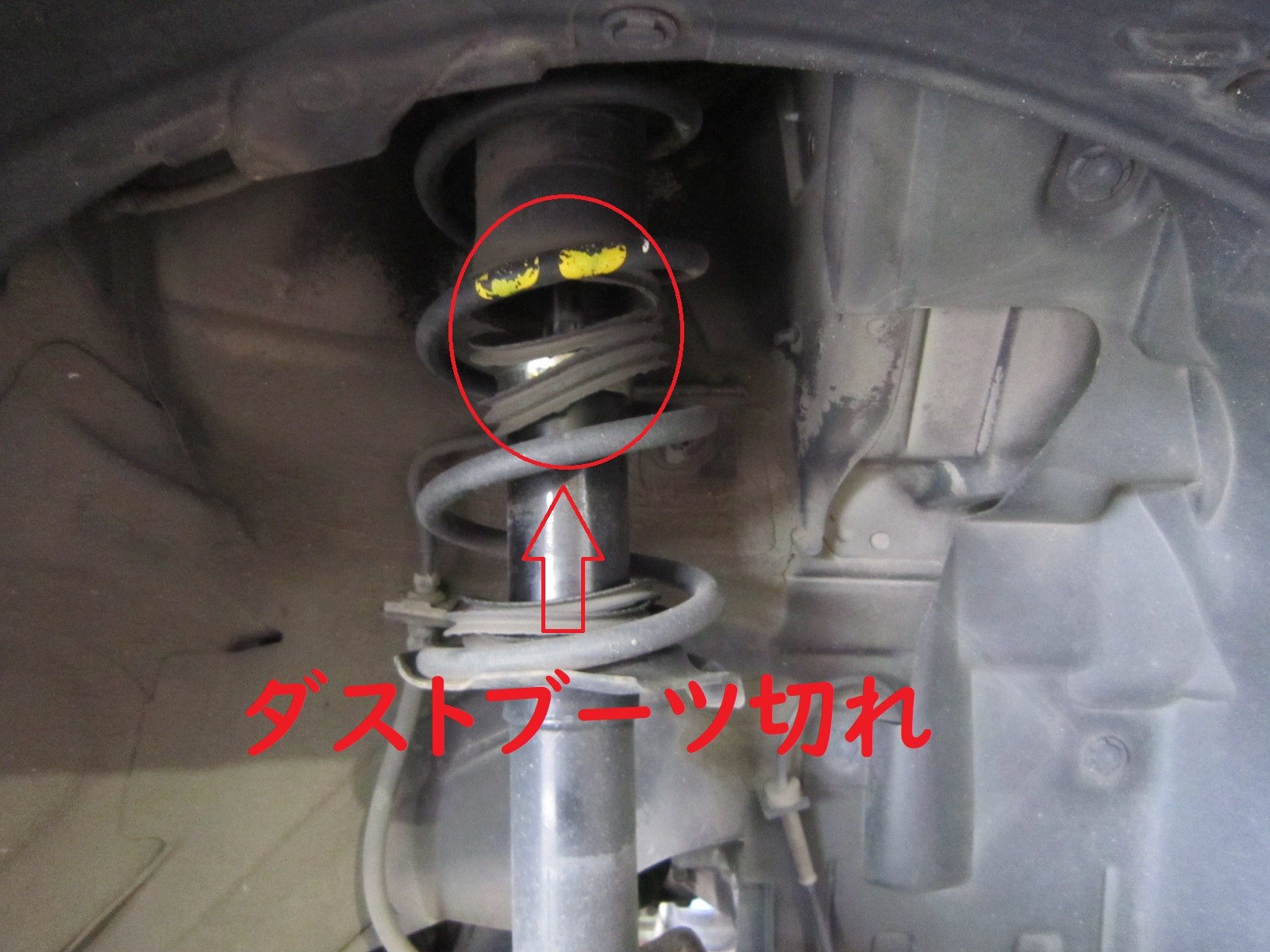 Fショックアブソーバーのダストブーツ(左右)が切れています。