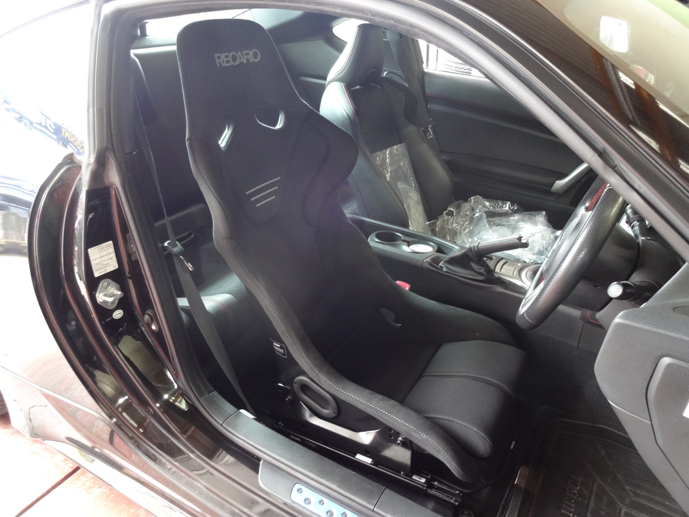 RECARO RS-G GKです。当初スペーサーを外し、純正の最下端位置と同等にセッティングさせて