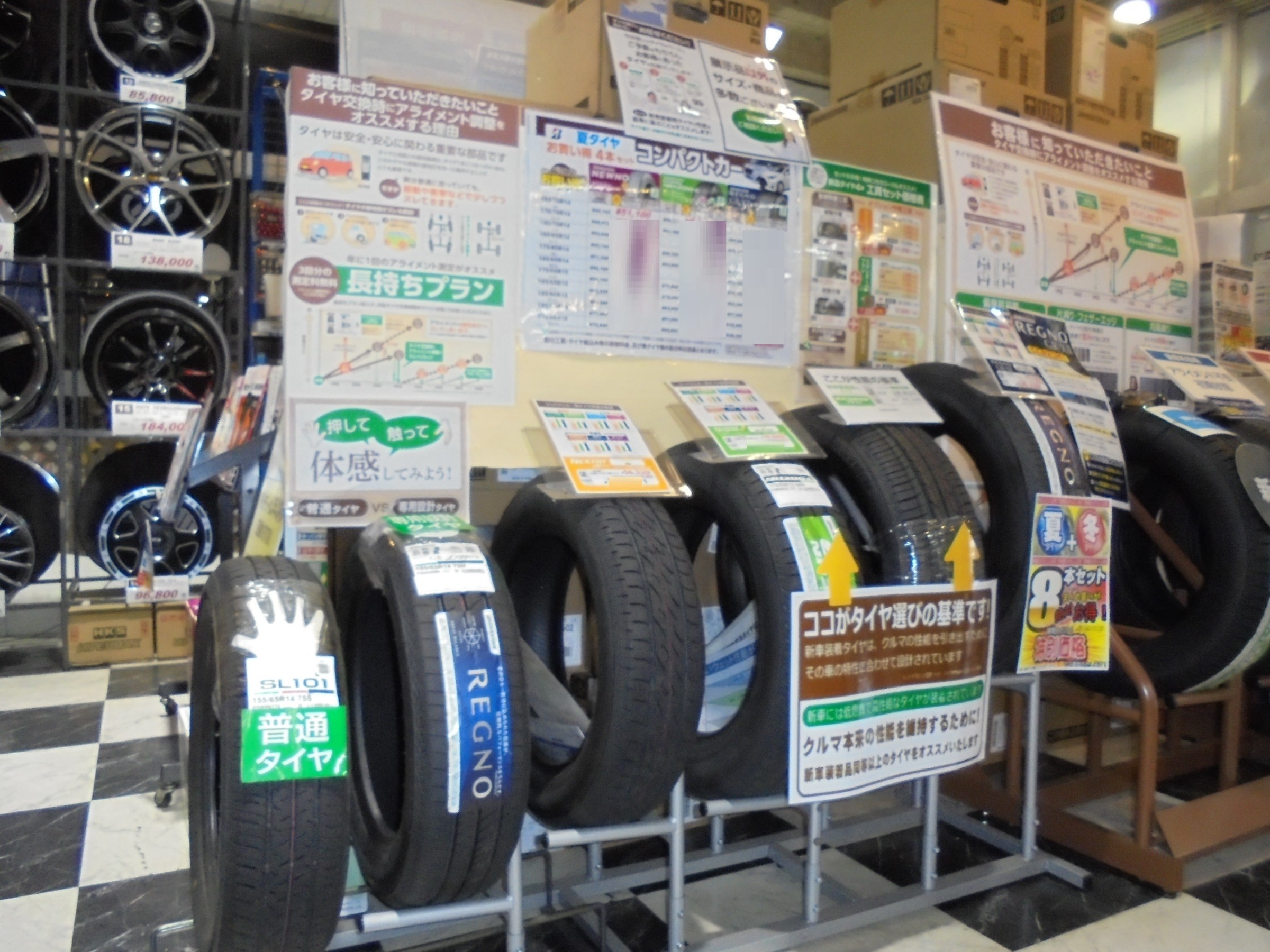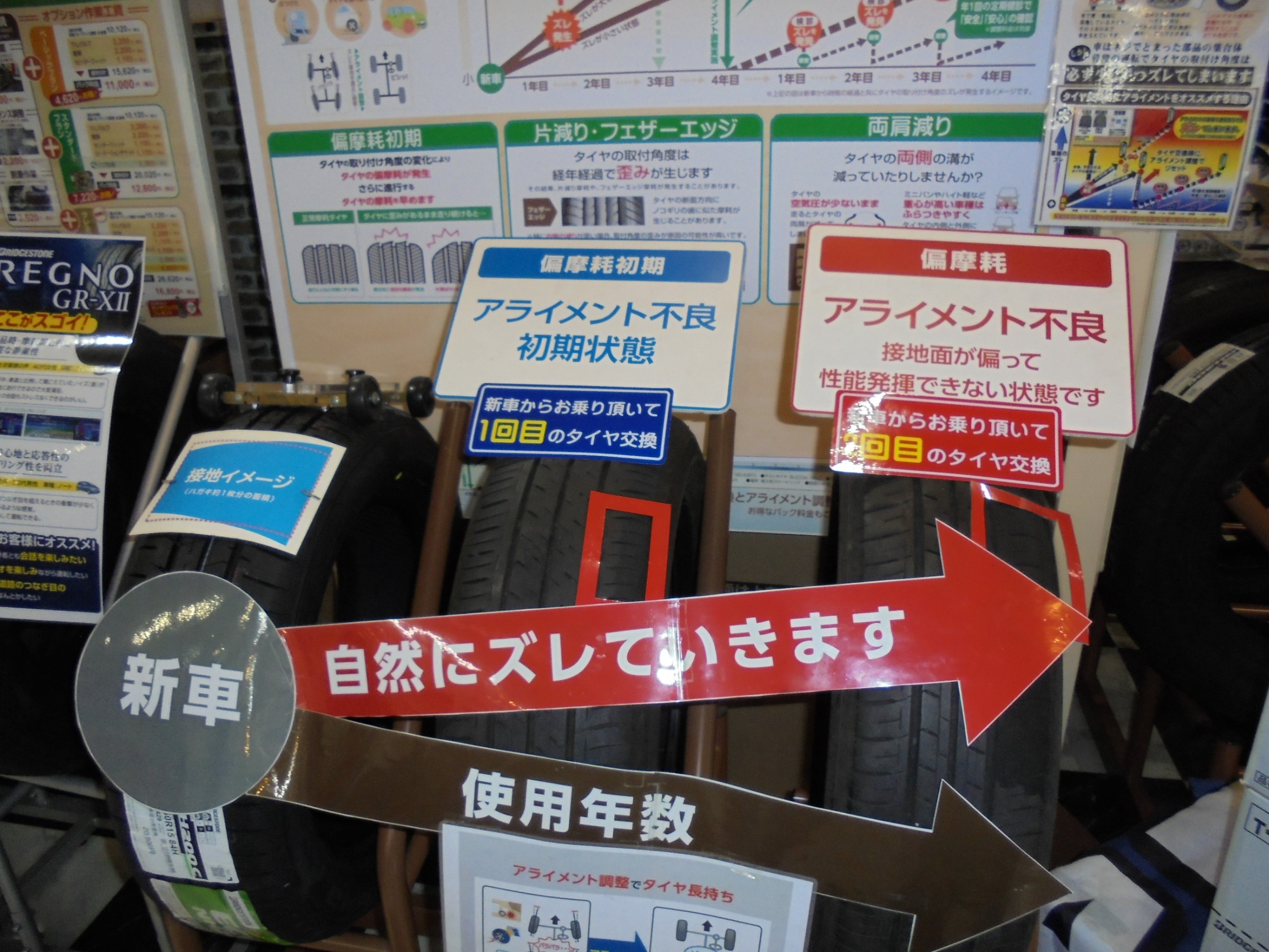 当店ではタイヤの説明とともにアライメント調整の説明もさせて頂いておりますので、