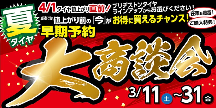 値上げ前のタイヤ購入は3月31日迄ですよ。