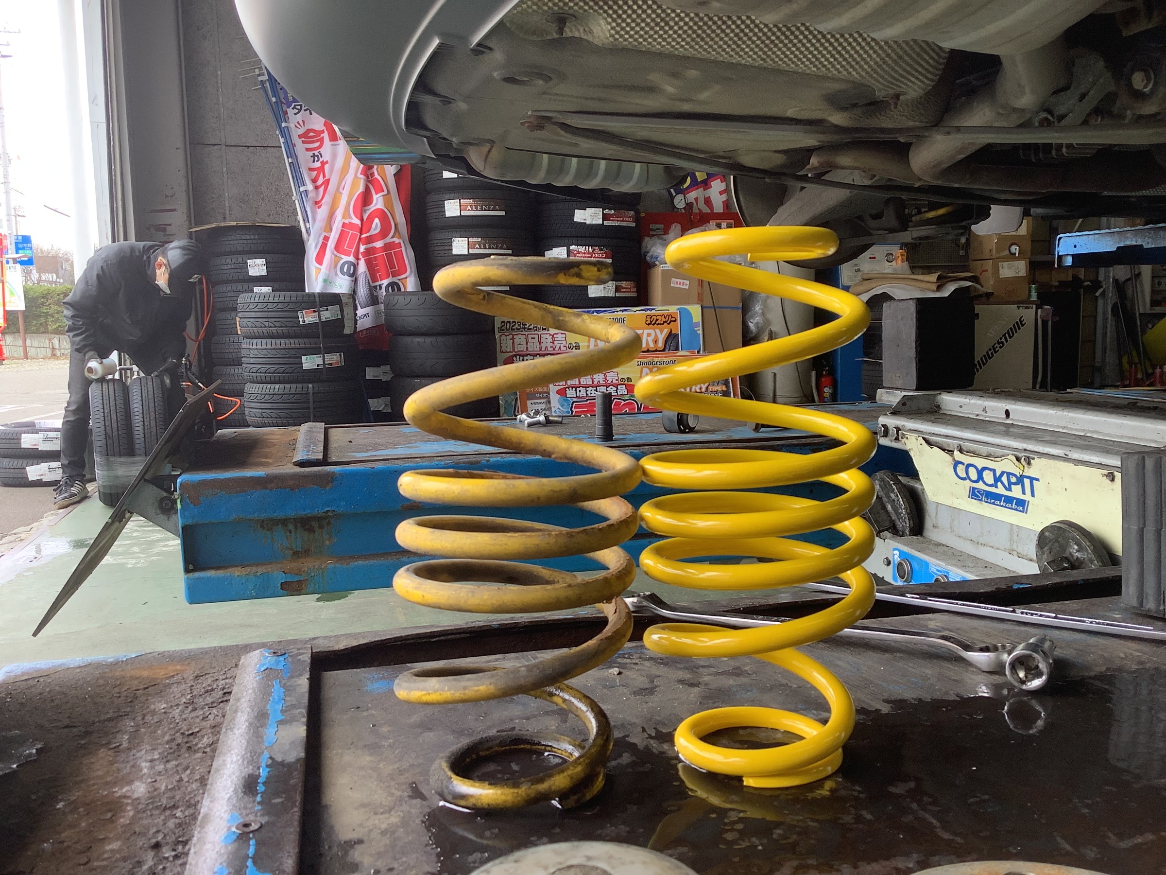 本日はタイヤ交換とリヤスプリングの交換で