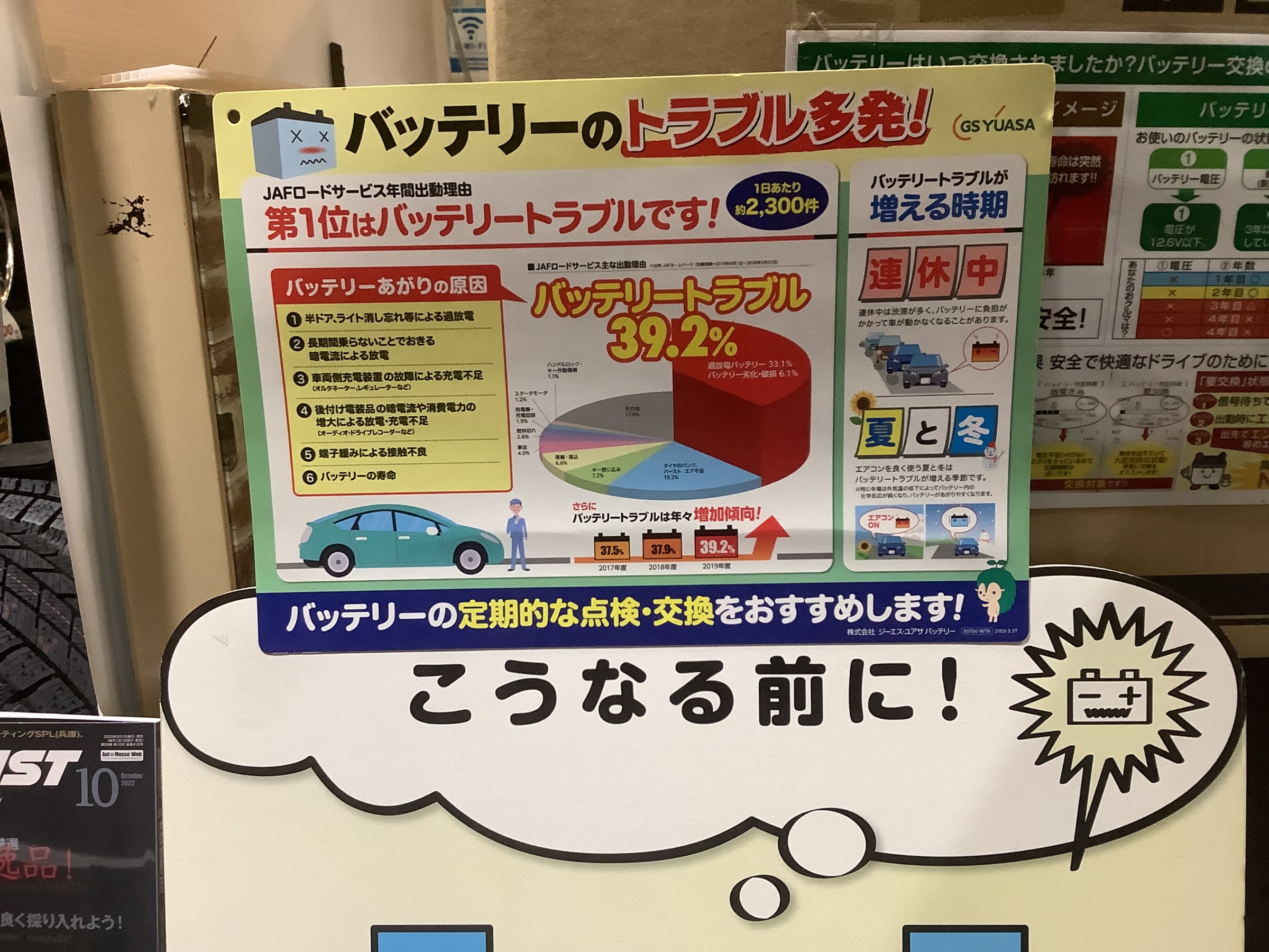 2023年5月13日 ツイート 日記をご覧の皆様、どうも江村で御座いますm(__)m GWも終わりどんどん暖かくなってきていますが エアコンを使い始めている方もいらっしゃるのではないでしょうか? そうなると増えてくるトラブルが・・・ そう! バッテリー上がり。 出先でトラブルになる前に はい! メンテナンスしませんか? Prev Next