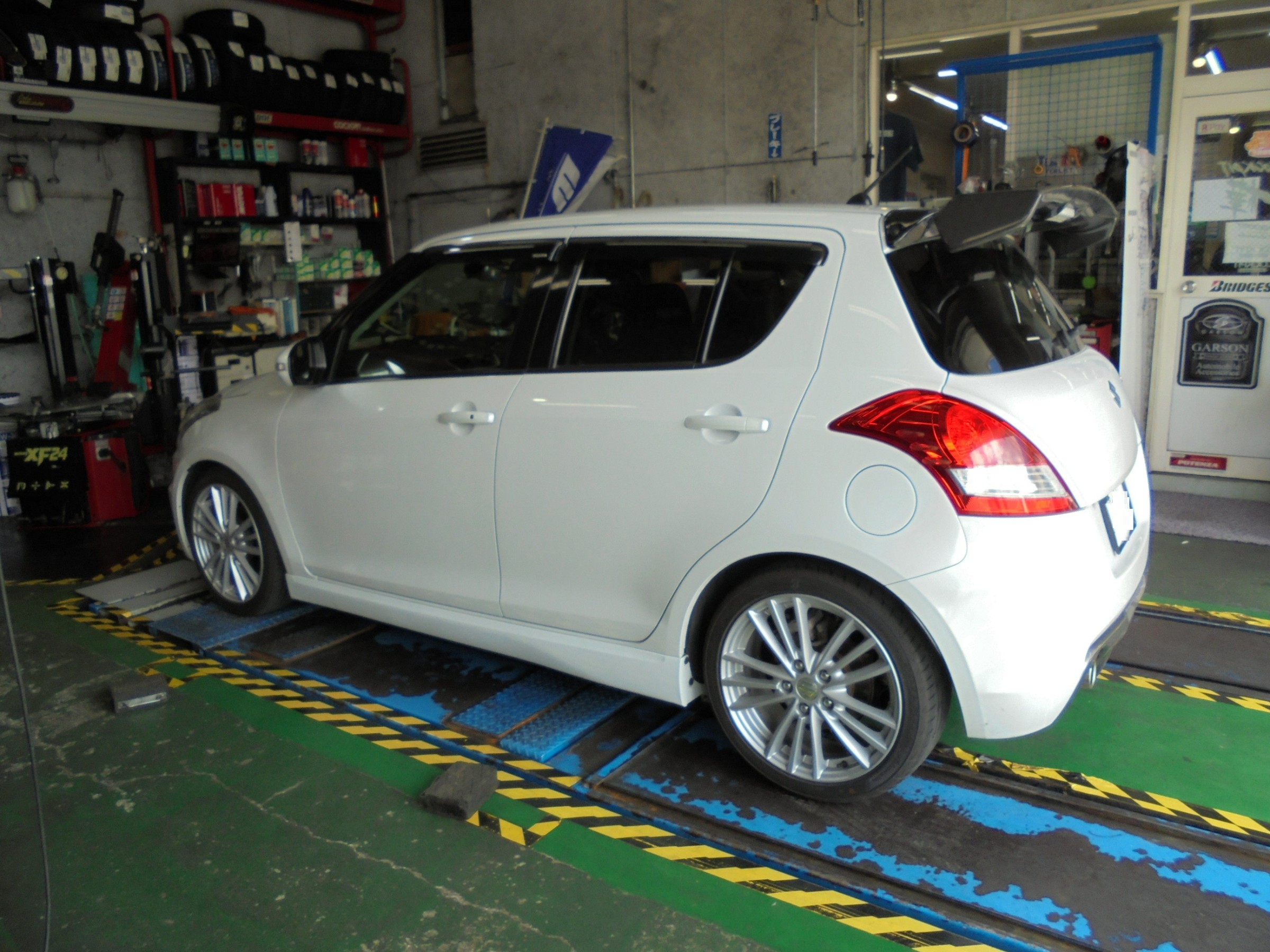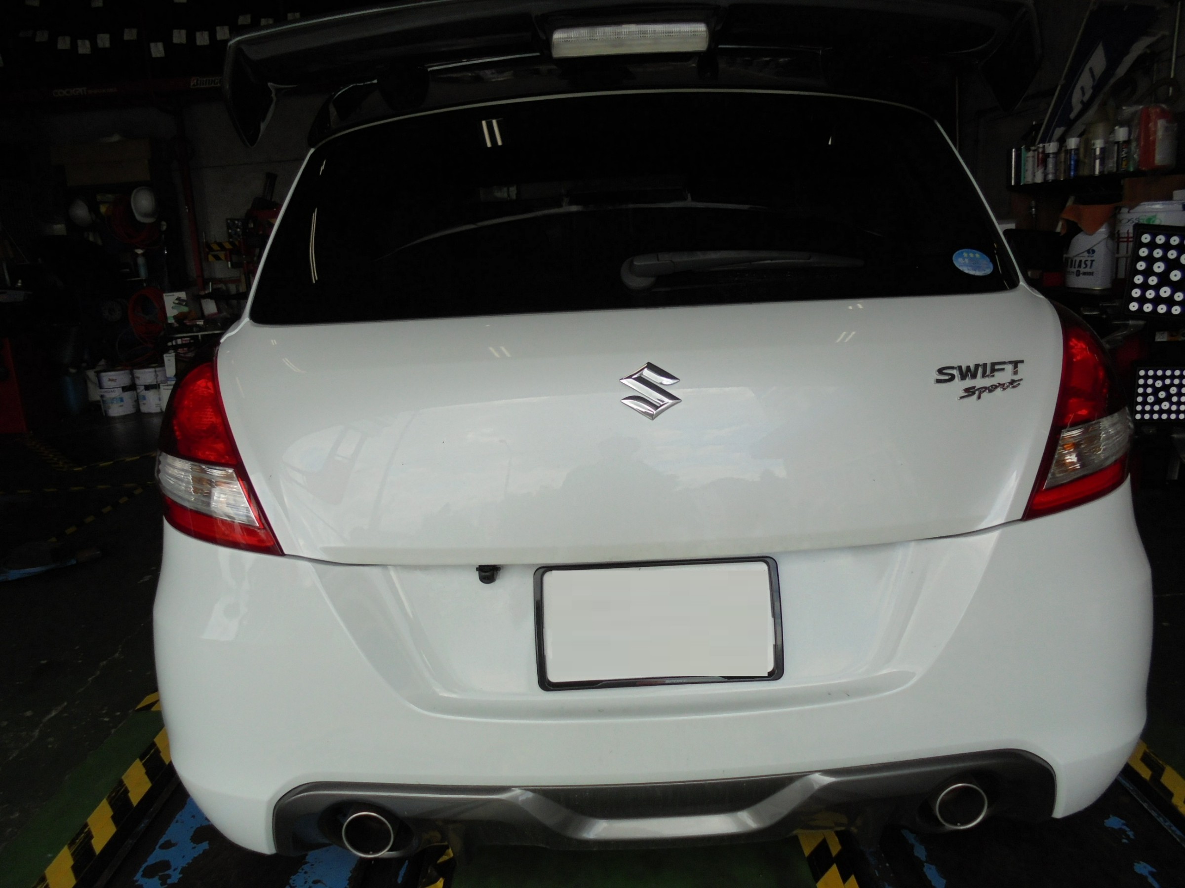 スイスポはバンパーに取り付け出来ないので、リアハッチに装着しました。