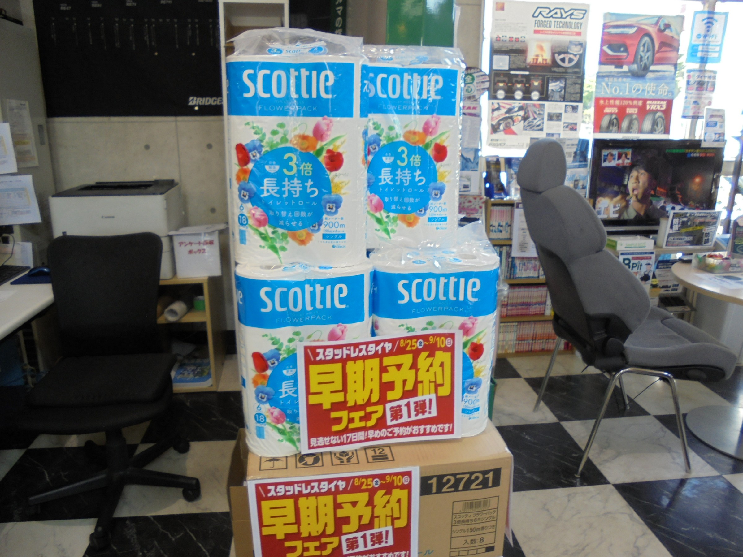 期間中は価格は勿論、タイヤ4本ご購入の方にトイレットペーパーをプレゼント!